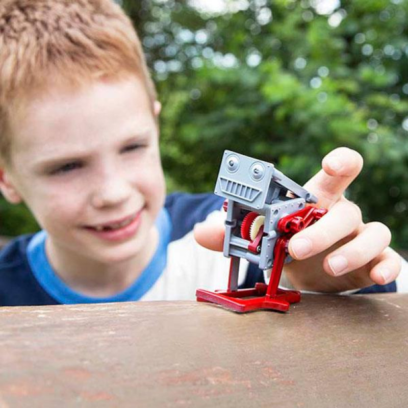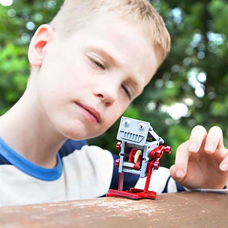 Зберіть компактного багатофункціонального робота на сонячній батареї з науковим набором від 4М! Випробуйте всі три конфігурації і подивіться, як робот спускається мотузкою, крокує по підлозі та їздить на колесах. І все це за рахунок енергії сонця, завдяки сонячній панелі.Дотримуйтесь інструкції та зберіть почергово три форми робота. У комплекті є необхідні деталі. Додатково знадобиться маленька хрестоподібна викрутка. Щоб робот почав рух, розташуйте його під яскравими сонячними променями або лампою розжарювання від 60 Вт.Панель сонячної батареї перетворює сонячне світло на електричний струм, який живить двигун. Він обертає перше колесо в редукторі, і шестерні знижують швидкість обертання, так що кулачки обертаються повільно. Вони перетворюють обертання вала на зворотно-поступальний рух.У деяких електромобілів на даху встановлені сонячні батареї, які заряджають акумулятори.Цей науковий набір від 4М із серії Green Science буде цікавий дітям молодшого шкільного віку від 8 років. Діти навчаться логічно мислити і збирати механізми з дрібних деталей, потренують інтелект, уяву, навички конструювання. Також це чудова можливість познайомитися з робототехнікою і механікою.Робот на сонячній батареї 3-в-1 від 4М отримав у 2016 році нагороду Brain Toy Award в США як краща розвиваюча іграшка.У наборі:Гачки #8211; 2 шт.Кришка коробки передач #8211; 1 шт.Лицьова панель #8211; 1 шт.Нижня панель #8211; 1 шт.Стінка механізму #8211; 1 шт.Колеса #8211; 2 шт.Тримач сонячної панелі #8211; 1 шт.Сполучні важелі #8211; 2 шт.Кулачкові колеса #8211; 2 шт.Деталі ступні #8211; 2 шт.Деталі ноги #8211; 2 шт.Конектори #8211; 8 шт.Сонячний редуктор #8211; 1 шт.Двигун із дротами #8211; 1 шт.Панель сонячної батареї #8211; 1 шт.Шнур #8211; 1 шт.Гвинти #8211; 6 шт.Інструкція #8211; 1 шт.Батарейки не потрібні.