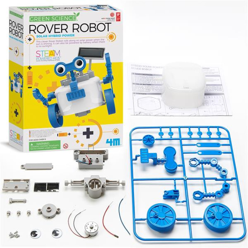 Створіть за допомогою наукового набору від 4М милого робота, схожого на Волл-і з мультфільму! Він буде впевнено пересуватися по столу або підлогою, ніби поверхнею планети, коли на панель потрапить сонячне світло. Для нічної роботи можна встановити у відсік батарейку.Комплект із серії Green Science знайомить із відновлюваною енергією, яка видобувається з природних ресурсів. Світло, потрапляючи на сонячну панель, перетворюється на електричний струм, який запускає двигун, і таким чином планетохід рухається. Якщо світла замало, встановіть на бічній панелі режим «батарейка» і робот переміщуватиметься навіть у темряві. Використання енергії, що отримана з двох різних джерел, називається гібридною системою живлення. Такими системами оснащені багато пристроїв із повсякденного життя: годинник, калькулятори, радіоприймачі. Космічні кораблі та станції також використовують сонячну енергію в якості одного з джерел живлення.Набір від 4М познайомить із такими науками як робототехніка та фізика, розповість про «зелену» енергію. У процесі збирання планетохода дитина розвиває винахідливість, інтелект, допитливість, навички конструювання. Комплект підходить для освіти за методикою STEAM.У наборі:Корпус робота #8211; 1 шт.Коробка передач #8211; 1 шт.Заднє колесо #8211; 1 шт.Сполучні штифти #8211; 6 шт.Кривошипи #8211; 2 шт.Тримач для очей #8211; 1 шт.Ліва рука #8211; 1 шт.Опора заднього колеса #8211; 1 шт.Права рука #8211; 1 шт.Великі колеса #8211; 2 шт.Батарейний відсік #8211; 1 шт.Відсік для сонячної батареї #8211; 1 шт.Двигун #8211; 1 шт.Кришка батарейного відсіку #8211; 1 шт.Сонячна панель #8211; 1 шт.Тримач для сонячної панелі #8211; 1 шт.Кришка двигуна #8211; 1 шт.Пара дротів #8211; 1 шт.Очі #8211; 2 шт.Гвинти #8211; 5 шт.Клемні кришки #8211; 3 шт.Інструкція #8211; 1 шт.