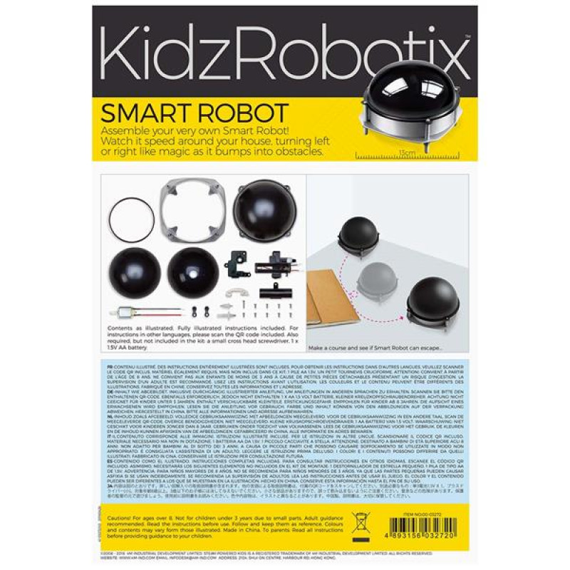 Познайомтеся ближче зі наукою створення роботів #8211; робототехнікою! Зберіть розумного робота, який вміє рухатися вперед, самостійно огинаючи перешкоди, з науковим набором від 4М. Побудуйте вдома лабіринт із підручних засобів і дивіться, як робот вміло вибереться з нього.У наборі є всі необхідні деталі для збирання робота і докладна інструкція з картинками. Додатково потрібні невелика хрестоподібна викрутка і батарейка АА.Як же влаштований розумний робот? Він пересувається за рахунок сфери, що обертається. Коли двигун працює, центр ваги сфери зміщується вбік і рухає робота вперед. Якщо робот стикається з перешкодою, сфера не може рухатися #8211; вона продовжує обертатися, доки робот знову не продовжить рух.Роботи, які пересуваються самостійно, називаються автономними. Вони не можуть, як люди, бачити, куди вони йдуть. Замість цього в них є сенсорні датчики, які сигналізують про те, що вони зіткнулися з перешкодою.Цей набір від 4М із серії KidzRobotix буде цікавий дітям від 8 років молодшої школи. Збирання робота допоможе розвинути уважність, винахідливість, інтелект, дрібну моторику, навчить логічно мислити, дасть навички конструювання.У наборіКришка #8211; 1 шт.Підставка #8211; 1 шт.Велика вісь з одиночною шестернею #8211; 1 шт.Маленька вісь із двома шестернями #8211; 1 шт.Металевий тягарець #8211; 1 шт.Кришка батарейного відсіку #8211; 1 шт.Кришка корпусу мотора #8211; 1 шт.Довгий гвинт #8211; 1 шт.Короткі гвинти #8211; 9 шт.Клемні кришки #8211; 2 шт.Двигун із приєднаними дротами #8211; 1 шт.Корпус двигуна #8211; 1 шт.Півсфера з отвором #8211; 1 шт.Півсфера без отвору #8211; 1 шт.Пластикове кільце #8211; 1 шт.Інструкція #8211; 1 шт.