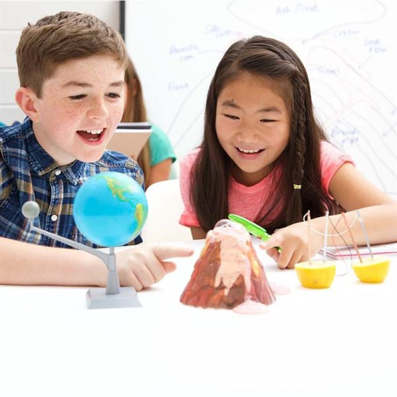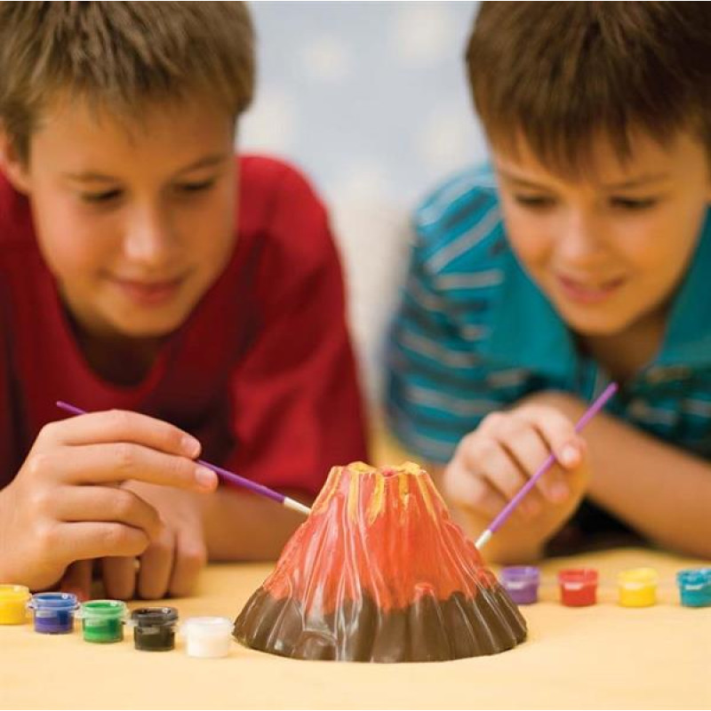 Зробіть настільний вулкан заввишки 9,5 см із набором для досліджень від 4M. Розмалюйте його фарбами з набору. Здивуйте своїх друзів і рідних виверженням шипучої лави. Це приголомшливий науковий проект і оригінальне оформлення столу. В інструкції з малюнками показано як створити макет вулкана за допомогою шаблона, і як розмалювати його, змішавши фарби для отримання нових відтінків. Також наведені цікаві факти про вулкани. Створення макета вулкана Перед початком роботи накрийте стіл газетою. Вам знадобиться: миска для змішування, ножиці. 1. Розріжте пакети з гіпсом, і всипте пороок у миску. 2. Додайте приблизно 280 мл води в гіпсовий порошок і перемішайте, доки суміш не стане однорідною. 3. Налийте суміш у форму і акуратно струсіть, щоб позбутися бульбашок повітря. 4. Залиште на 20-30 хв. при кімнатній температурі. 5. Коли гіпс затвердіє, акуратно відокремте заготовку від форми. Фарбування макета вулкана Для досягнення найкращих результатів фарбування дочекайтеся повного висихання гіпсової поверхні вулкана. Це може зайняти до 24 годин. Розфарбуйте макет вулкана коричневим і червоним кольорами або виберіть кольорову гаму самостійно. Прочитайте поради по змішуванню фарб, щоб створити нові відтінки. Виверження вулкана Знадобиться трохи оцту і харчової соди, щоб імітувати виверження вулкана. Оцет і сода в комплект не входять. Краще провести цей експеримент на вулиці або добре накрити поверхню столу, щоб уникнути його пошкодження або фарбування. 1. Насипте чайну ложку харчової соди в кратер, додайте кілька крапель рідини для миття посуду і червоної фарби, щоб лава виглядала як справжня. 2. Повільно влийте чайну ложку оцту в кратер, і спостерігайте за виверженням. 3. Можна продовжувати додавати оцет до повного розчинення харчової соди.Макет вулкана підходить для багаторазових експериментів. Набір для досліджень від 4М серії KidzLabs буде цікавий дітям від 8 років молодшої школи. Він сприяє розвитку уяви і мислення. Знайомить дітей з основами хімії, вулканології, геології. Може використовуватися для занять за методикою Реджио.У комплекті: - форма для вулкана, - два пакета з гіпсом, - шість баночок із фарбами різних кольорів, - пензлик, - мішалка, - лист з наклейками, - інструкція.