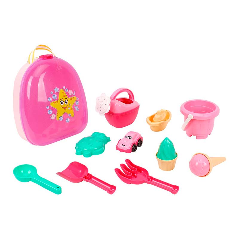 Набір для гри з піском ТехноК арт.0310 у рюкзаку виконаний в рожевій гаммі кольорів - чудове поєднання комфорту, стилю та сучасних іграшкових трендів.