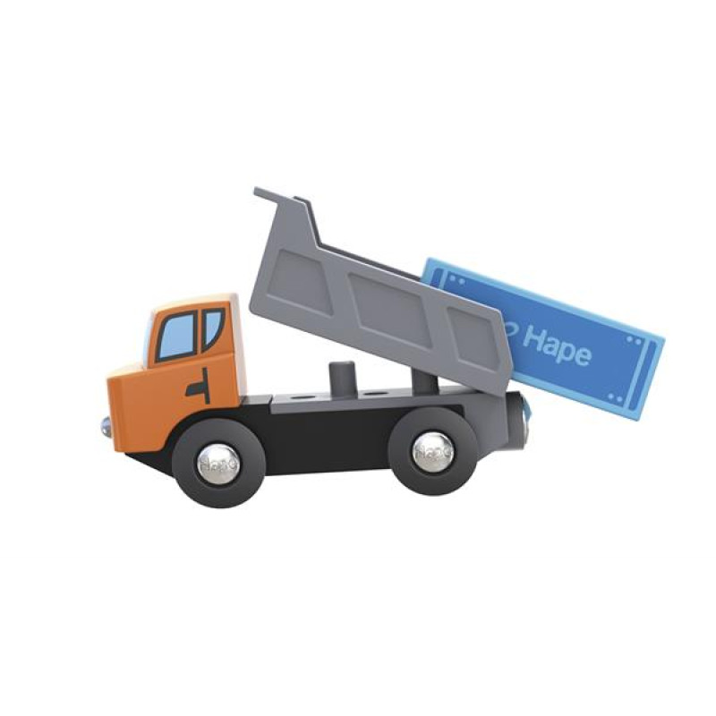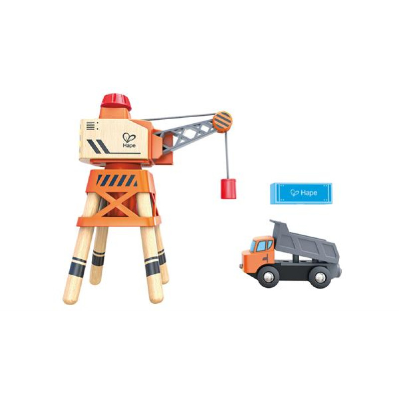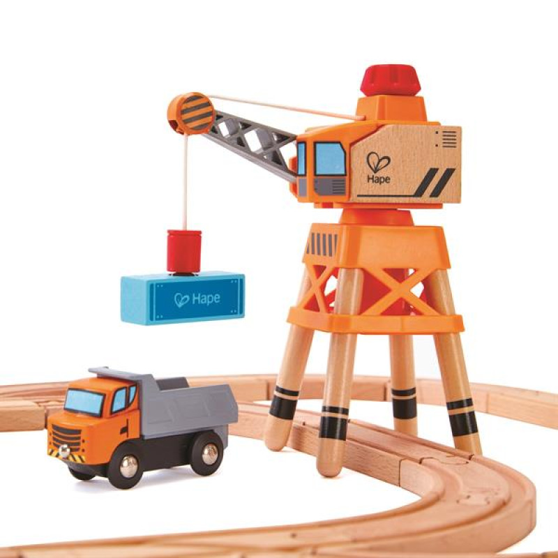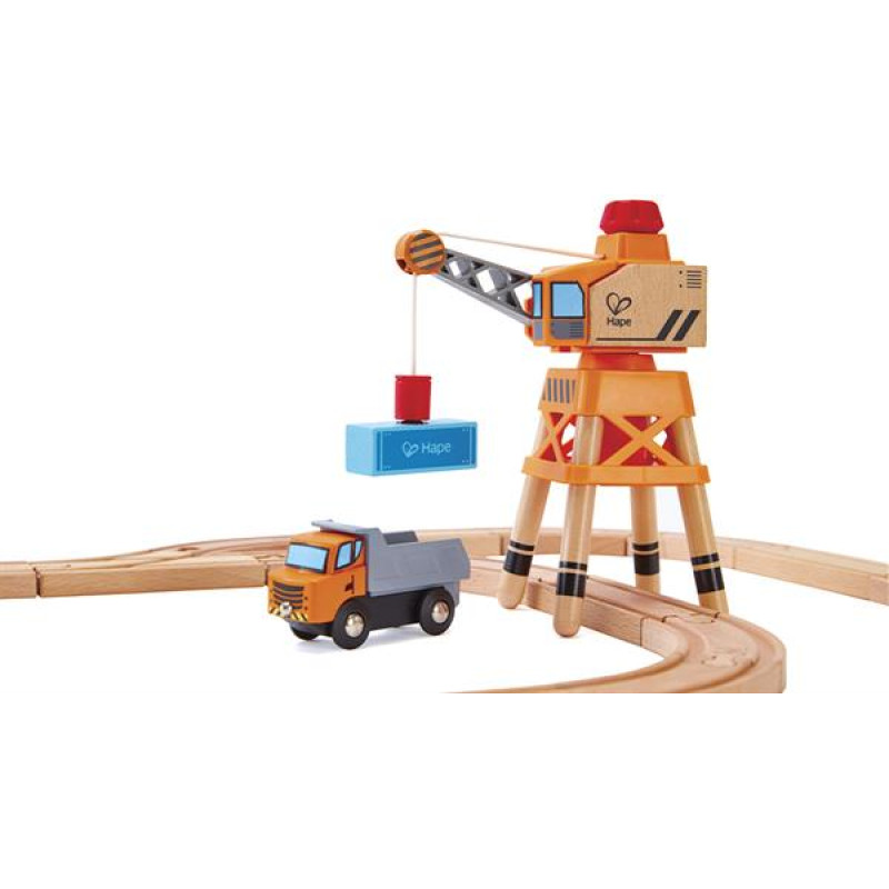 Набір для іграшкової залізниці Hape Підйомний кран та вантажівка (E3715)