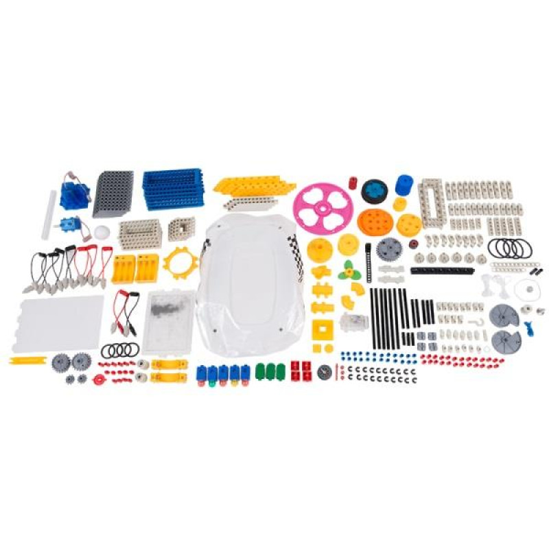 Поєднуючи фундаментальні наукові знання в механіці, динаміці, електриці, електромагнетизмі і повітряної силі, кожен курс заснований на науковій теорії та використовує актуальні цікаві теми поруч з ігровими діями. Діти можуть в ігровій формі збирати моделі, одночасно вивчаючи науку. Для роботи потрібні 10 АА батарейок (не входять до комплекта). Робочі зошити для дітей українською.