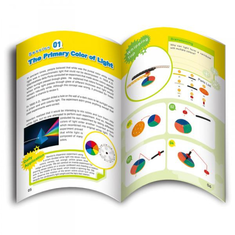 Курс присвячений вивченню і застосуванню на практиці оптичних явищ. На заняттях діти вивчають основні кольори світла і його поширення, принцип роботи оптичних пристроїв, їх застосування. Ознайомившись з принципом роботи розсіювальних і збиральних оптичних лінз, діти зможуть зрозуміти пристрій мікроскопа, телескопа або проектора, а також створити їх моделі самостійно. Курс складається з 20 занять. Тривалість одного заняття 45-60 хвилин.Батарейки не потрібні.