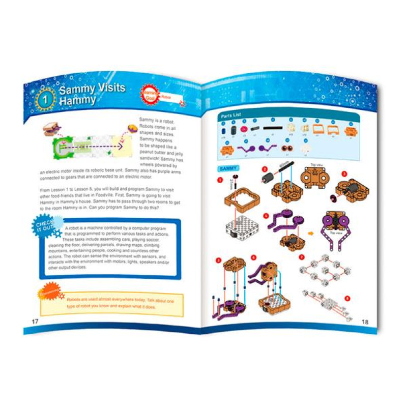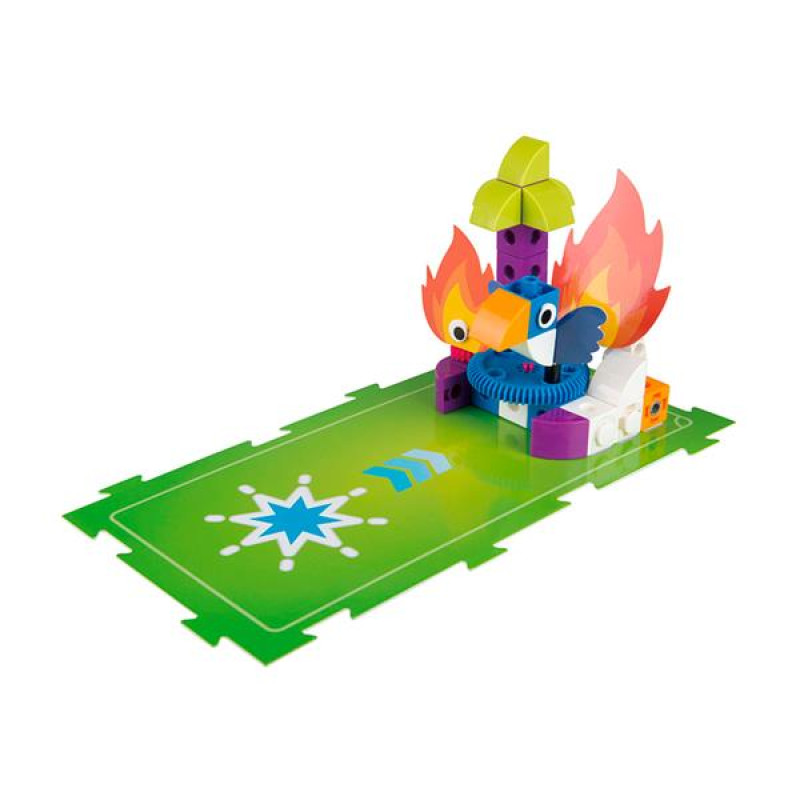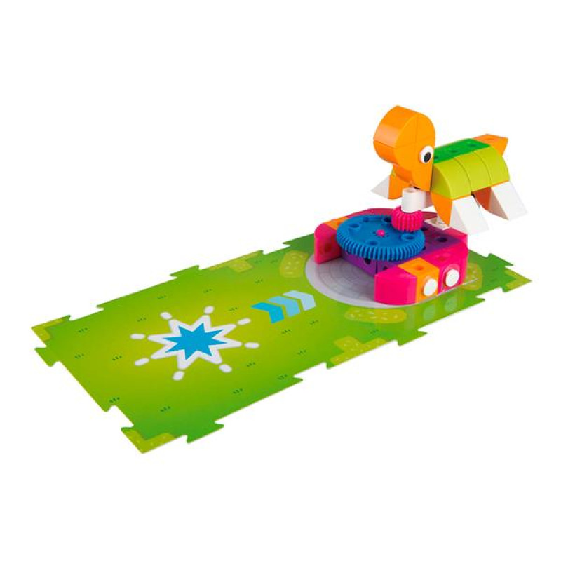 Діти можуть вивчити основи програмування з цим набором. Вони виконують практичні завдання на уроках із роботом і картами кодів. У комплекті багато сценаріїв та історій для веселого навчання.Це чудова гра для вивчення логіки основ програмування, яка не потребує додаткових технологій, таких як планшети або смартфони.У наборі є 108 карт кодів, 16 карт маршрутів, 3 базові карти маршрутів, 1 роботизований базовий блок і різні будівельні блоки для збирання моделей.Базовий блок зчитує карти кодів, які дають команди рухатися (вперед, назад, поворот направо, поворот наліво, пауза, крутіння). У базовому блоці є зовнішній механізм, який може взаємодіяти з іншими моделями або функціями робота. Є звукові та світлові ефекти.У наборі також контейнер для сортування та зберігання деталей (арт. 1032). Додатково потрібні батареї 3 х AA/LR06 (не в комплекті).Продукт також включаєРобочий зошит А (20 курсів) для дитячого садка.Робочий зошит B (20 курсів) для початкової школи (опціонально).Керівництво для вчителя в електронній формі.Інтелектуальне керівництво у вигляді веб-сервісу.Відео як працюють готові моделі.