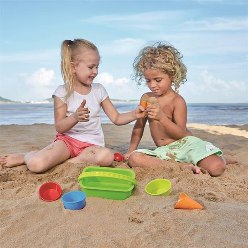 Ігровий набір для піску Hape Магазинчик морозива сподобається дітям від 18 місяців.Морозиво люблять дорослі та діти. То чому ж не зробити його власноруч? Стаканчики і ріжки під морозиво, спеціальна кругла ложечка і відерце-контейнер допоможуть у цьому. Набір урізноманітнює гру в пісочниці та додасть позитивних емоцій.Ігровий набір для піску Hape Магазинчик морозива (E4057) відповідає міжнародним стандартам якості EN 71 і ASTM F963.