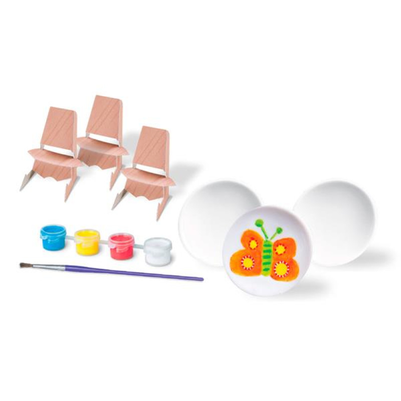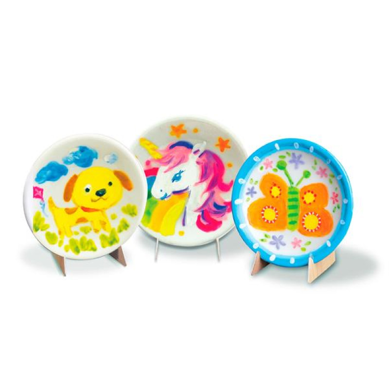 Набір для творчості 4M Розфарбуй міні-тарілочки містить усе необхідне для створення сувенірів ручної роботи. Перетворіть три міні-тарілочки на шедеври! Вони неперевершені в якості домашнього декору або оригінального подарунка. Набір сподобається дівчаткам від 8 років.Розпис тарілочок #8211; чергове цікаве заняття для вашої творчої майстерні від 4M. Спочатку нанесіть на міні-тарілочки ескіз простим олівцем, а потім починайте розфарбовування. Задіюйте фантазію або скористайтеся готовими ідеями на упаковці. На ній також є «формули» змішання фарб для отримання нових відтінків. Складіть із картонних заготовок підставки. Акуратно встановіть на них розписні декоративні тарілочки для домашньої галереї.Заняття з наборами для творчості серії Little Craft розкривають художні здібності, розвивають уяву, навички поєднання кольорів, естетичний смак, дрібну моторику. Діти бачать результат своєї роботи, що дає їм упевненість у своїх здібностях. Такий набір #8211; чудова можливість відволіктися на деякий час від гаджетів. Він тренує вміння направляти увагу і переключатися між різного роду заняттями, що позитивно позначається на успішності.У комплекті: 3 білі фарфорові тарілочки (діаметр 6 см), 3 картонні підставки, фарби, пензлик.