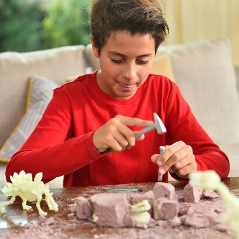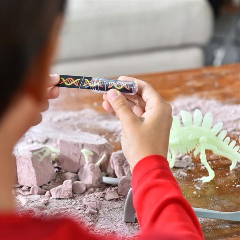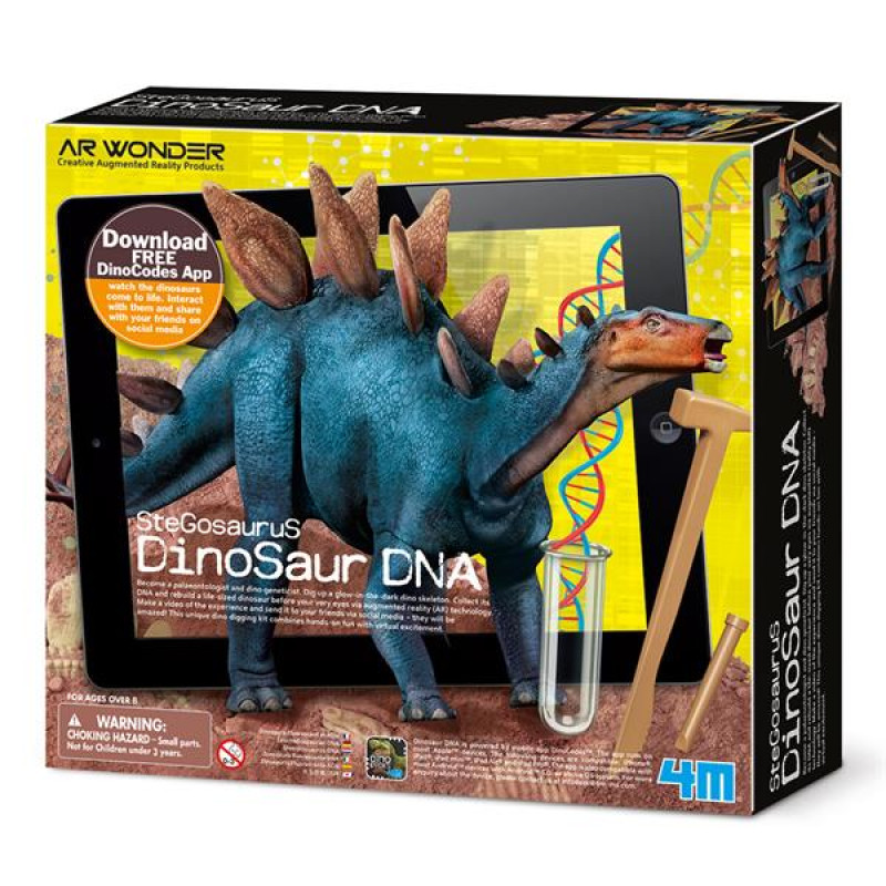 Мрієте сфотографуватися зі справжнім динозавром? З набором для досліджень від 4М ви навіть зможете зняти про нього короткометражний фільм! Але для початку вам доведеться перетворитися на палеонтолога і відшукати скелет доісторичної тварини та капсулу з її ДНК.Проводячи розкопки за допомогою спеціального інструменту, дійте обережно. Коли ви знайдете скелет, очистіть його від залишків пилу за допомогою пензлика. Зберіть його і помістіть до власного музею палеонтології #8211; він буде світитися в темряві!Тепер приходить найцікавіший момент: відкрийте капсулу з ДНК у вигляді наклейок і заповніть ними пропуски на спеціальному ігровому килимку. Завантажте безкоштовний додаток DinoCodes в Google Play або App Store, наведіть камеру гаджета на килимок #8211; і ви побачите ожилого динозавра в повний зріст! Робіть фотографії та знімайте відеоролики #8211; здивуєте своїх друзів.Набір із серії AR Wonder допоможе дитині розвинути дрібну моторику, тактильні відчуття, мислення і фантазію.У наборі:Гіпсовий блок зі скелетом і капсулою з наліпками ДНК динозавра #8211; 1 шт.Інструмент для розкопок #8211; 1 шт.Пензлик #8211; 1 шт.М'який віск #8211; 1 шт.Ігровий килимок #8211; 2 шт.Інструкція #8211; 1 шт.