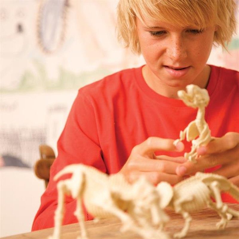 Створіть свій власний музей динозаврів. Вам належить спробувати себе в ролі вчених-палеонтологів, які займаються розкопками. Із набором для досліджень від 4М на розкопках ви знайдете скелет стегозавра, що зберігся у відмінному стані.Обладнайте робоче місце і переодягніться: на вас чекає робота з купою пилу! Використовуйте спеціальний інструмент для розкопок, щоб відшукати в гіпсовому брикеті кістки стегозавра. Ви маєте запастися терпінням і обережністю. Для очищення від пилу більш дрібних деталей використовуйте пензлик. Коли зберете всі частини скелета, протріть їх ганчірочкою і з'єднайте разом за допомогою м'якого воску. Бачите пластини у динозавра на спині? Вони захищали ящера від хижаків. Завдяки подібності цих пластин до черепиці, перші дослідники назвали цього динозавра #8211; стегозавр, що у перекладі з латині поєднує два поняття #8211; «дах» та «ящірка».Готова модель заввишки 17 см. Для гідного оформлення знахідки використовуйте підставку з фоном. На звороті ви знайдете факти про динозаврів. Уявіть: стегозавр важив близько 3,8 тон, але в нього був крихітний мозок #8211; фактично розміром із горіх.Станьте справжнім експертом з палеонтології та зберіть усі моделі з серії KidzLabs. Ви познайомитеся з «королем» хижаків тиранозавром Рексом, брахіозавром із довгою та міцною шиєю, рогатим трицератопсом і хвостатим велоцираптором. Ця серія комплектів від 4М розвиває інтелект, дрібну моторику, фантазію та уяву.У наборі:Гіпсовий блок зі скелетом динозавра #8211; 1 шт.М'який віск #8211; 1 шт.Інструмент для розкопок #8211; 1 шт.Пензлик #8211; 1 шт.Підставка-фон #8211; 1 шт.Інструкція #8211; 1 шт.