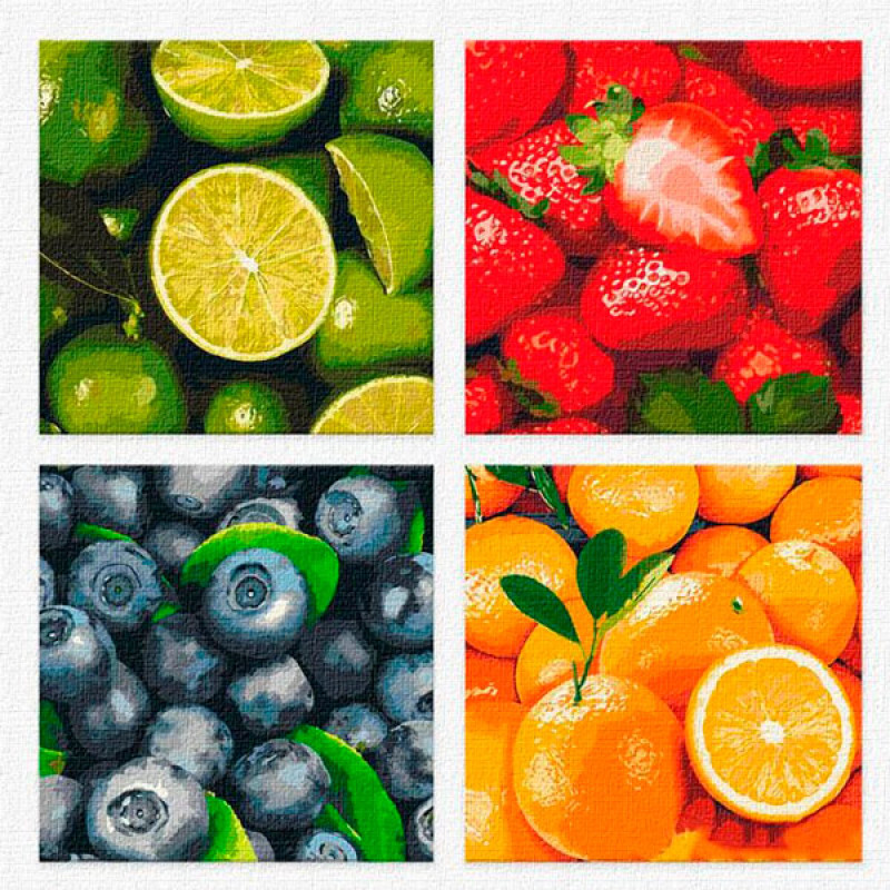 Картина за номерами по номерах. Поліптих "Фруктовий мікс" 4шт 25*25см