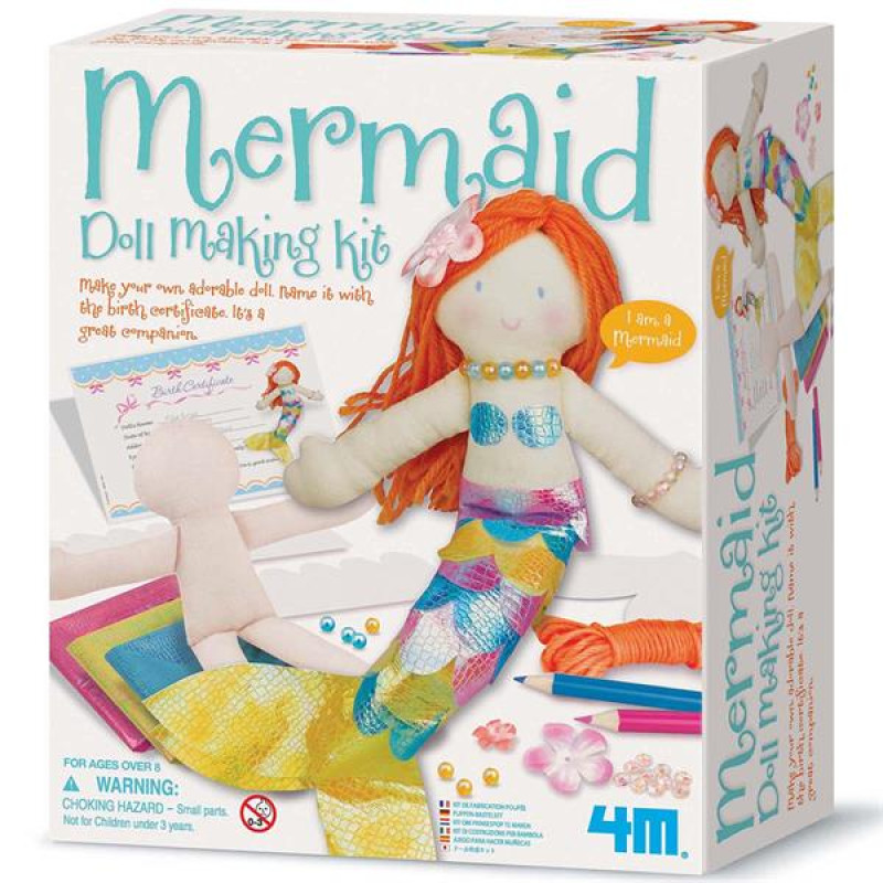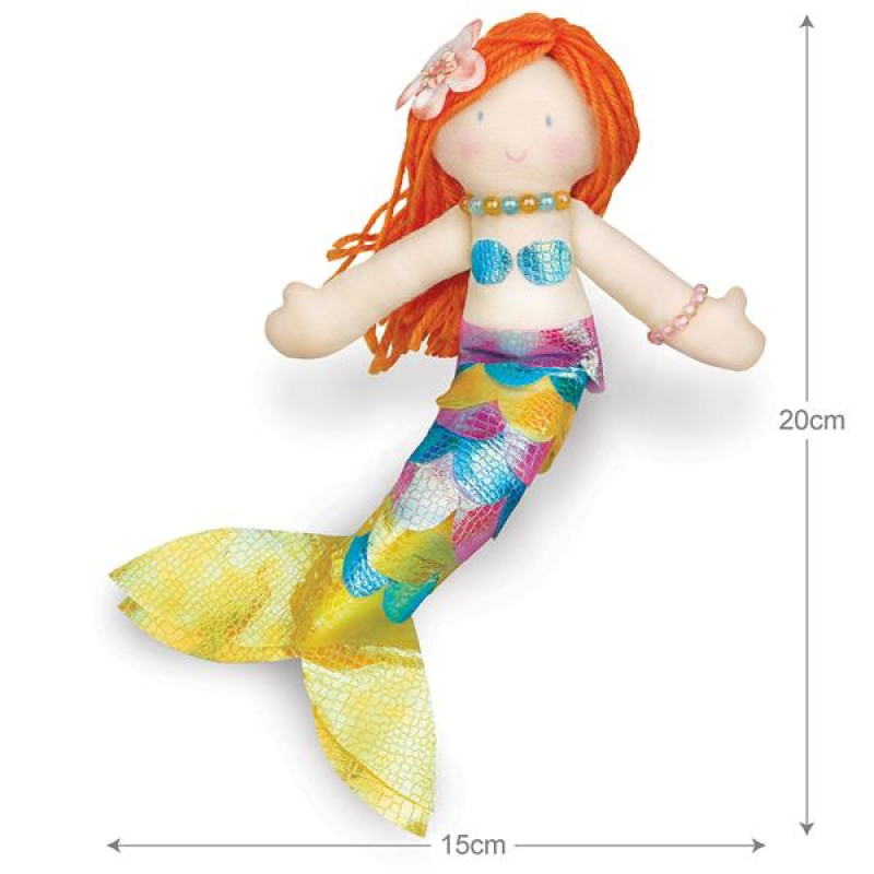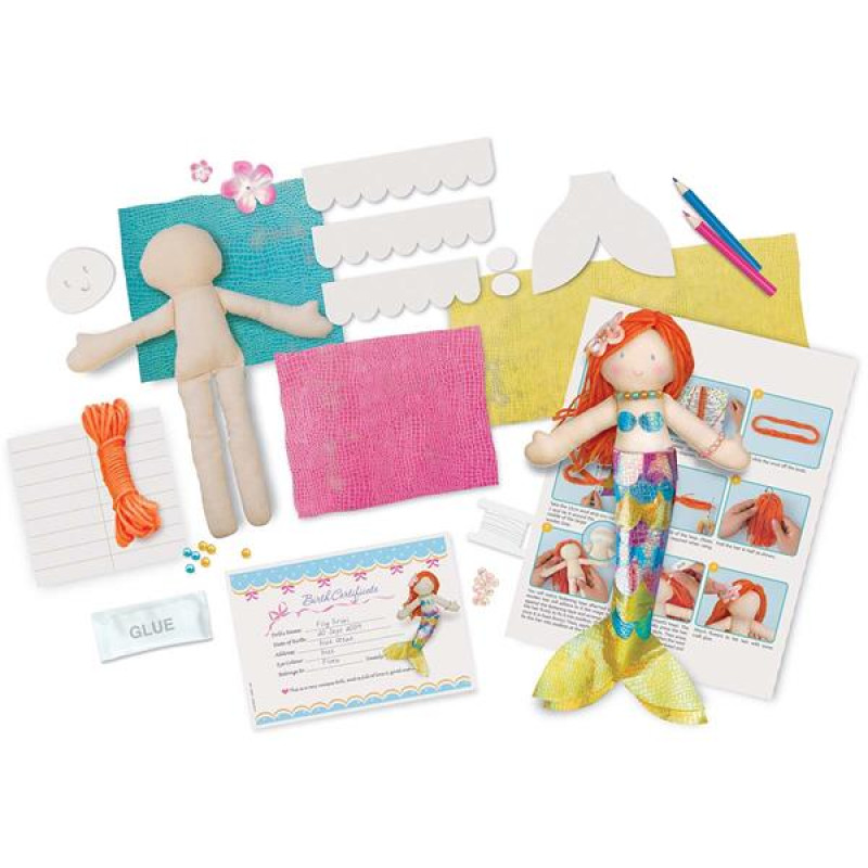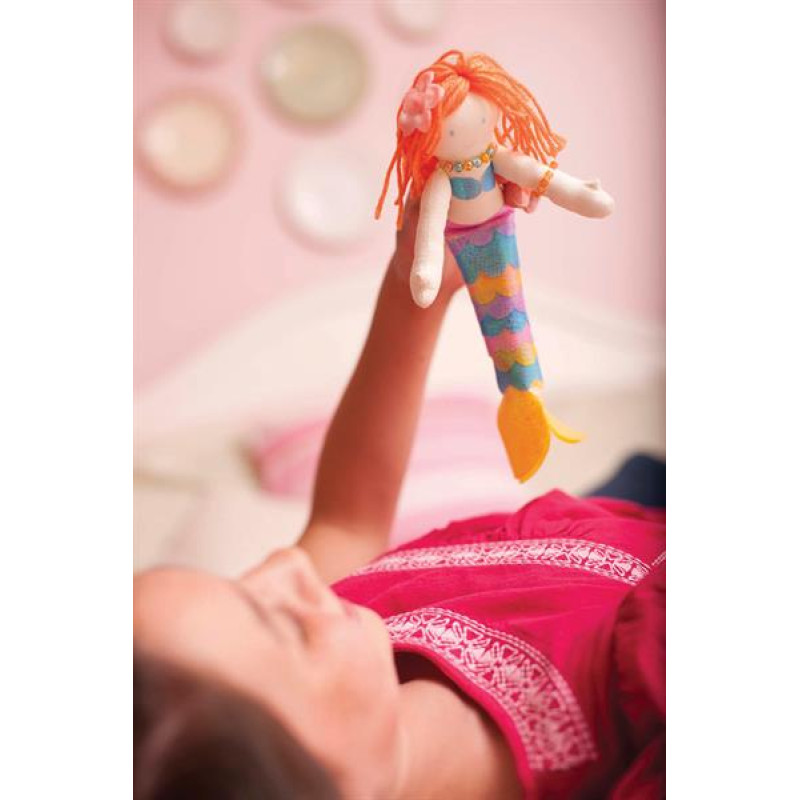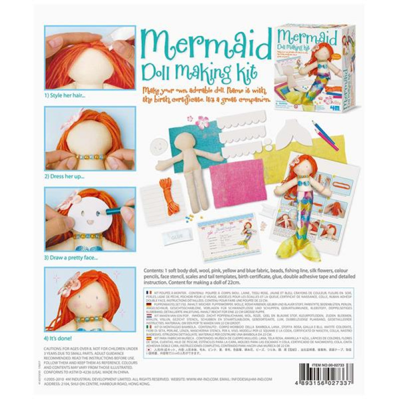 Створіть м'яку іграшку власноручно, не використовуючи гострих шпильок і голок! Вам не потрібні навички шиття. У наборі для творчості від 4М Лялька-русалка ви знайдете все необхідне для створення ляльки заввишки 22 см. Вона стане кращою подружкою для будь-якої дівчинки від 8 років! Влаштуйте вдома справжню творчу майстерню. Приготуйте ножиці. Усе інше для ви знайдете в наборі: пряжу для зачіски, шовкові квіти для прикрашання волосся, намистини для браслета тощо. Закріплюйте декоративні елементи клеєм і двостороннім скотчем на м'якій заготівці для ляльки. Дійте за інструкцією з картинками, щоб лялька-русалка вийшла красивою і акуратною. У комплекті також є трафарет для малювання обличчя за допомогою кольорових олівців. Коли ви змайструєте ляльку-русалку, залишиться фінальний крок: придумати їй ім'я і заповнити свідоцтво про народження. Цей набір із серії Crafts сподобається дівчаткам молодшого шкільного віку. Створення ляльки-русалки допоможе розвинути творчі здібності, фантазію, естетичний смак, навички дрібної моторики, підвищить емоційне благополуччя. У наборі Заготівка для ляльки Моток вовняної пряжі Шовкові квіти Блискуча тканина трьох кольорів 2 кольорових олівця Декоративний дріт Набір намистинок Моток волосіні Трафарети для обличчя і хвоста Клей Двостороння клейка стрічка Свідоцтво про народження Інструкція