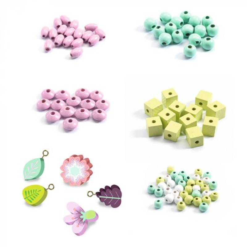 Набір для створення прикрас Djeco Квіти із дерев'яними намистинами 450 ел. (DJ09808)