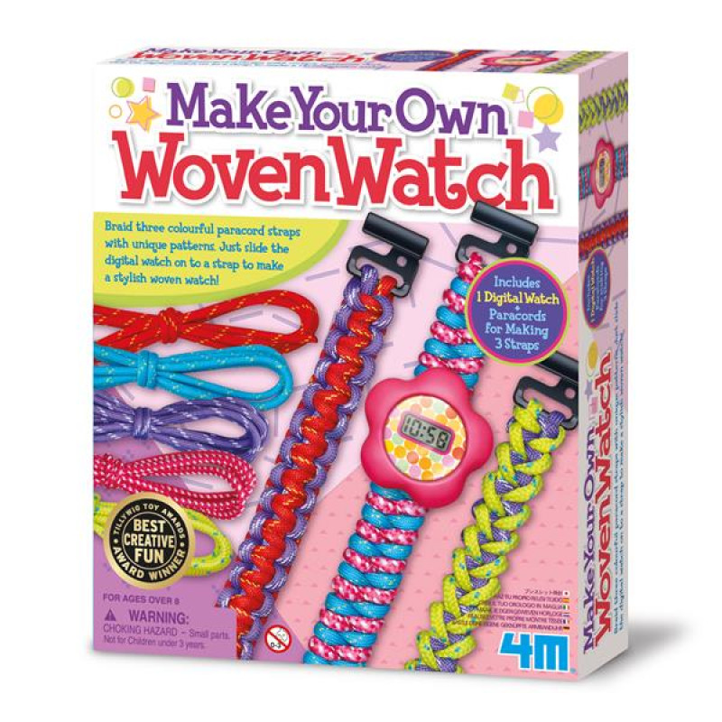 Створіть стильний наручний годинник із плетеними ремінцями у вашій творчій майстерні. Із набором від 4М ви опануєте нові види плетіння браслетів із різнобарвного паракорда #8211; міцного нейлонового шнура. Змінюйте унікальні плетені ремінці під настрій. Будьте завжди стильними!Цей набір для творчості з серії Crafts підійде дівчатам молодшої школи від 8 років. Створення браслетів для наручних годинників допоможе розвинути дрібну моторику, уяву, колірне сприйняття, проявити творчі здібності та підвищити емоційне благополуччя.Дотримуючись інструкції з ілюстраціями, ви навчитеся плести трьома прийомами: «кобра», «риб'ячий хвіст» і «змійка». Додатково знадобляться ножиці. Коробку набору можна використовувати в якості опори при плетінні браслетів. Увімкніть годинник і вставте його в оправу у вигляді квітки. Оберіть браслет під ваше вбрання та прикріпіть годинник.У наборіМотки кольорових шнурів #8211; 5 шт.Застібки #8211; 3 шт.Цифровий годинник #8211; 1 шт.Оправа для годинника #8211; 1 шт.Клей #8211; 1 шт.Інструкція #8211; 1 шт.