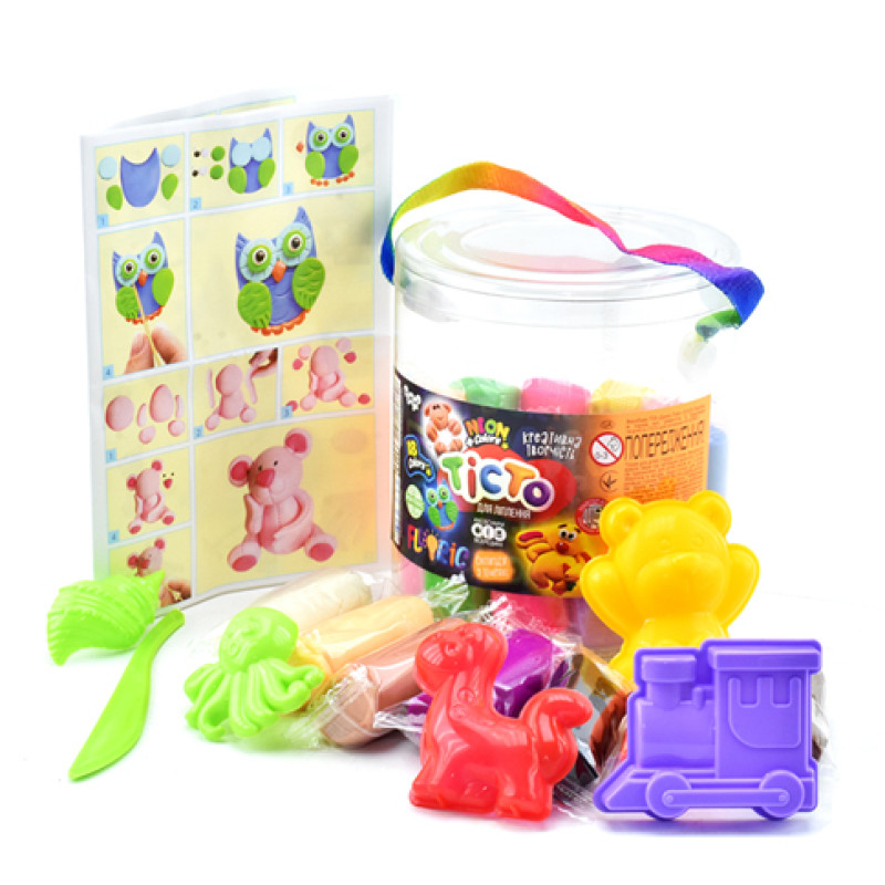 Комплектація: тісто - 18 кольорів, 5 формочок, стек, інструкція.