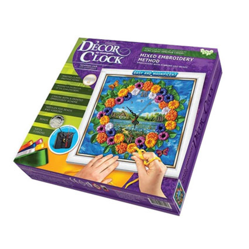 Набір уже містить усе необхідне для виготовлення функціонального настінного годинника і призначений як для початківців, так і для досвідчених майстрів. До комплекту набору для творчості "Decor Clock" входить: полотно з надрукованою схемою-вишивкою, голки для бісеру та стрічок, атласні стрічки, бісер, багетна рамка для оформлення готової роботи, детальна інструкція. Рекомендовано для дітей від 12-ти років.