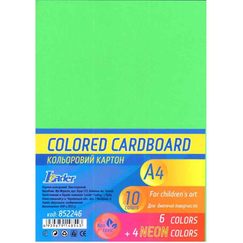 Набір двостороннього кольорового картону А4 852246 10 аркушів
