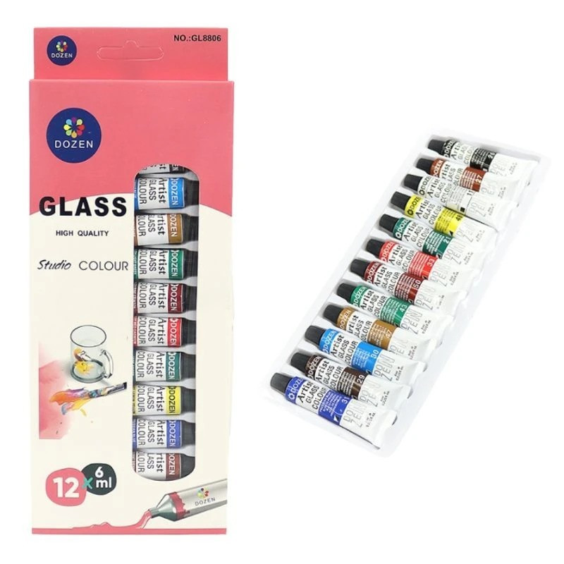 Перетворіть звичайний скляний посуд на витвір мистецтва! Набір фарб Dozen (арт. DSCN0694) розроблений спеціально для творчості на гладких поверхнях. Завдяки компактному об'єму та багатій палітрі, цей набір ідеально підходить як для художників-початківців, так і для детальних декораторських робіт.