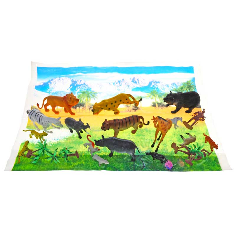 Різноманіття видів: Набір включає в себе фігурки різних диких тварин, таких як слони, леви, жирафи, зебри та інші, щоб створити мальовничу картину африканської природи.
