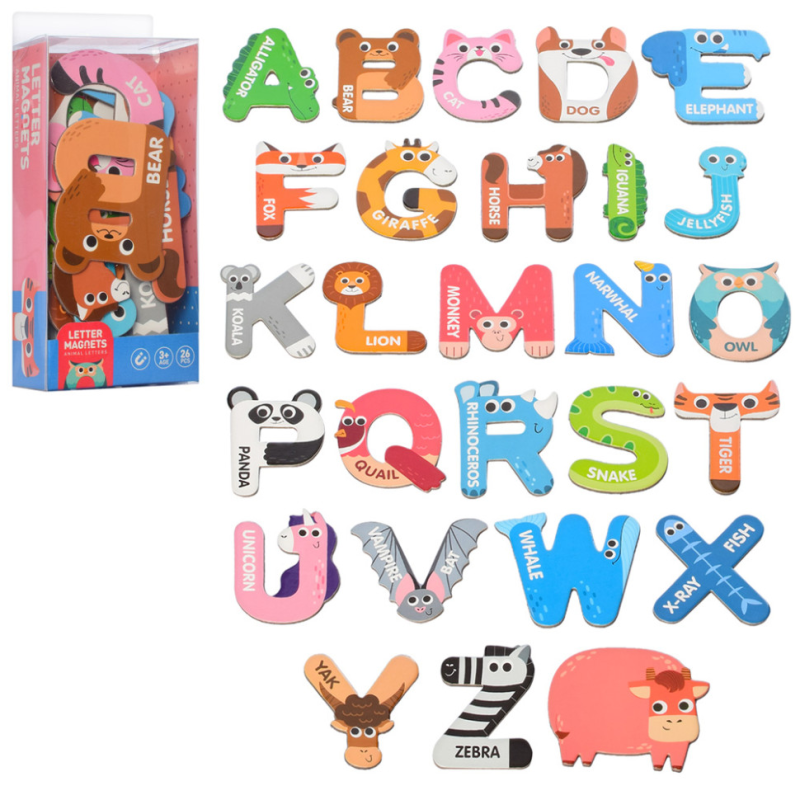 Набір магнітний 2058 літери англійського алфавіту. Назви тварин англійською мовою.