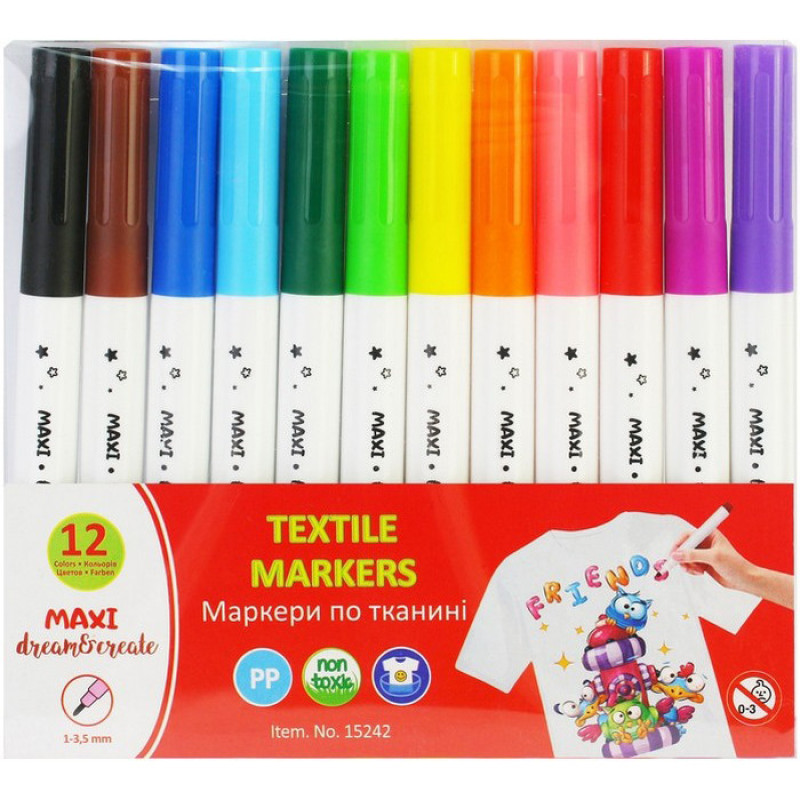 Набір маркерів по тканині MX15242, 12 кольорів