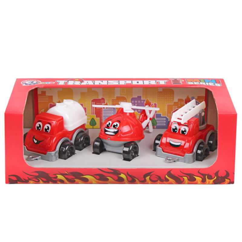 Іграшка «Транспорт Міні ТехноК» - це набір відважних «пожежників». Швидкий гелікоптер, поважний цистерновоз та пожежна машина поспішають на допомогу ляльковим героям! Такі сюжетно-рольові ігри дуже корисні для малюків, вони розвивають уяву, мислення та фантазію. Всі члени пожежної команди наділені емоціями - оченята та посмішка нанесені безпечним для дітей методом тамподруку.
