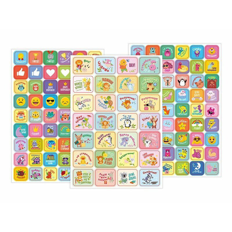 Ці стікери допомагають вихователям і вчителям м’яко й ефективно оцінити старанність, охайність чи поведінку без жодного тиску. Дитина отримує не просто оцінку - вона отримує похвалу, визнання та посмішку.