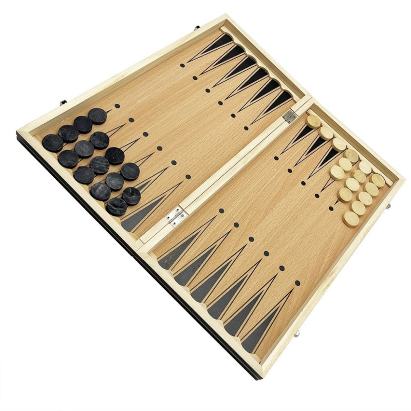 Комплектація: шахівниця, фішки для шашок і нард, фігури для шахів