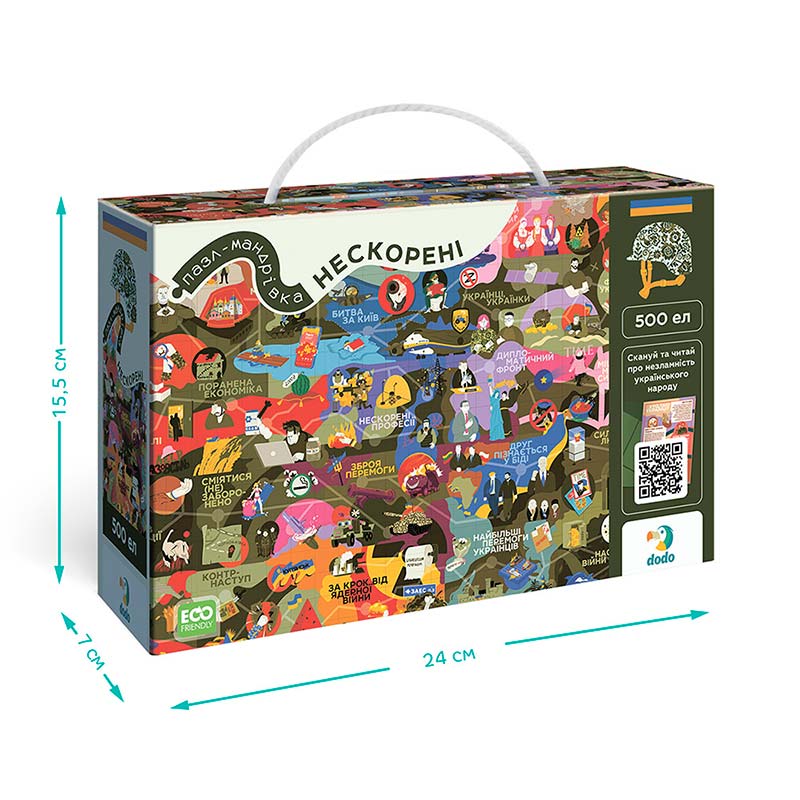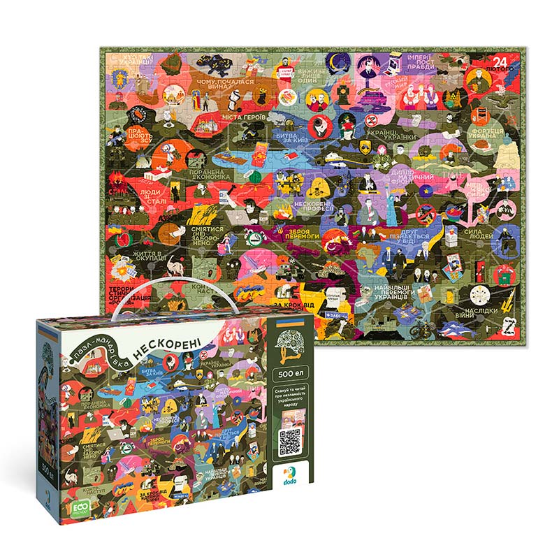 Пазл Dodo "Нескорені" — це особливий пазл на 500 елементів, створений у співпраці з творцями Книги-мандрівки "Нескорені". Цей пазл є унікальним доповненням до книги, яке дозволяє не лише насолодитися складанням, а й глибше зануритися в історію України.