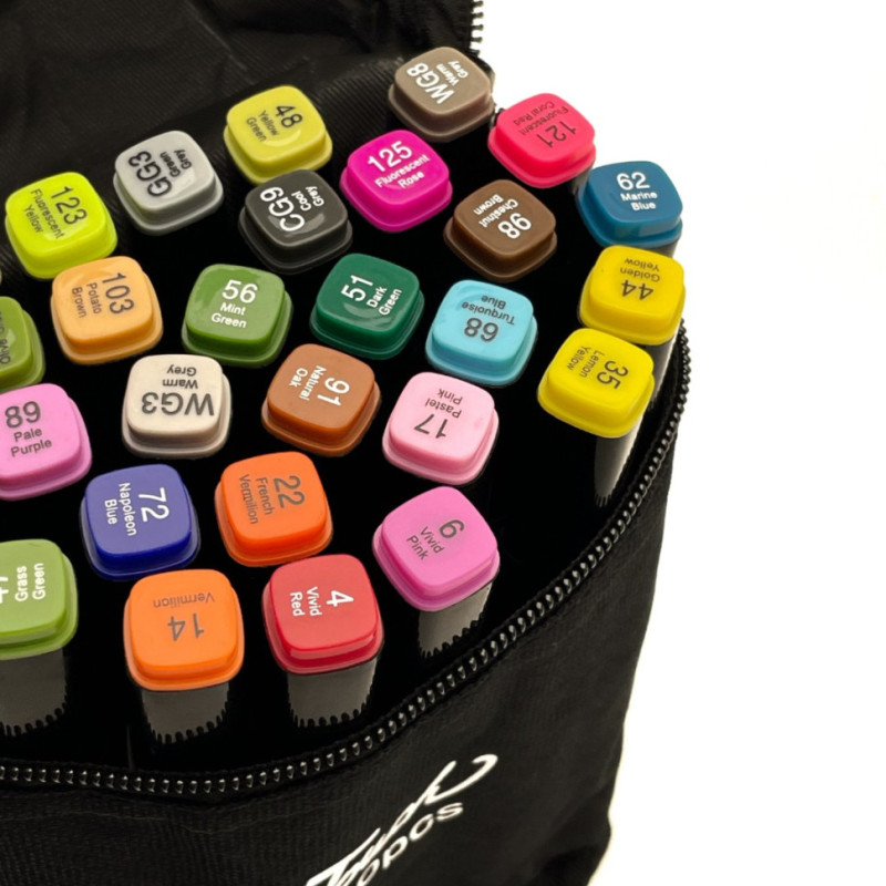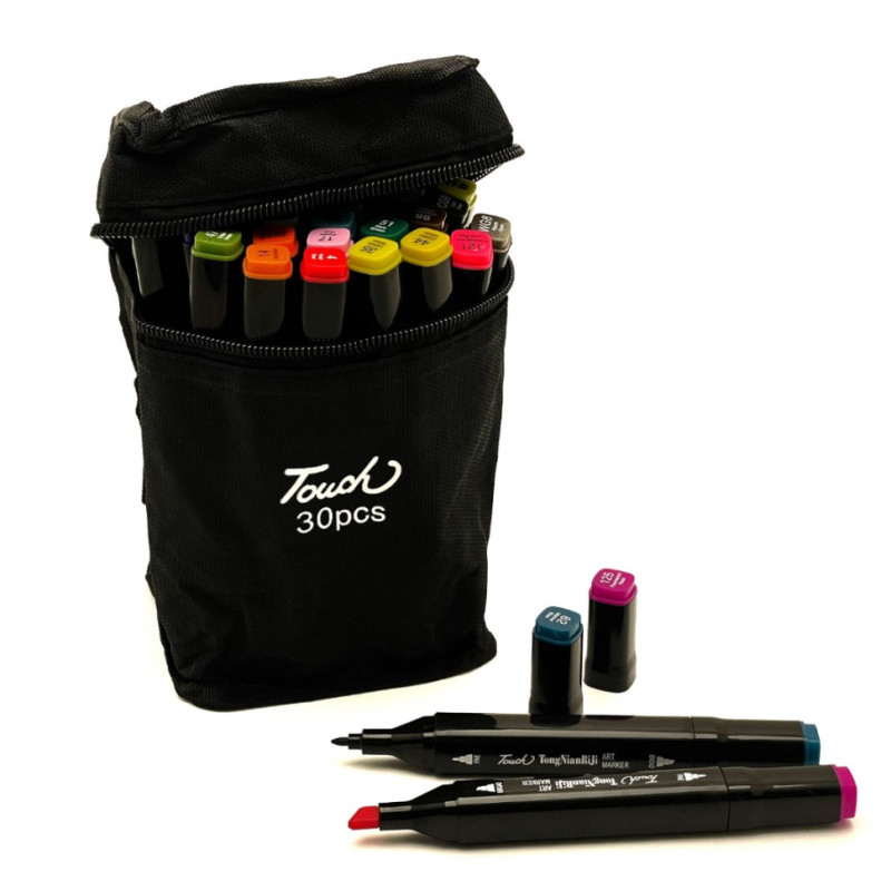 У комплект входить 30 кольорів, що відкриває широкі можливості для експериментів і створення унікальних проєктів. Усі маркери зручно зберігаються у спеціальній сумці, яка забезпечує порядок і комфорт під час транспортування.