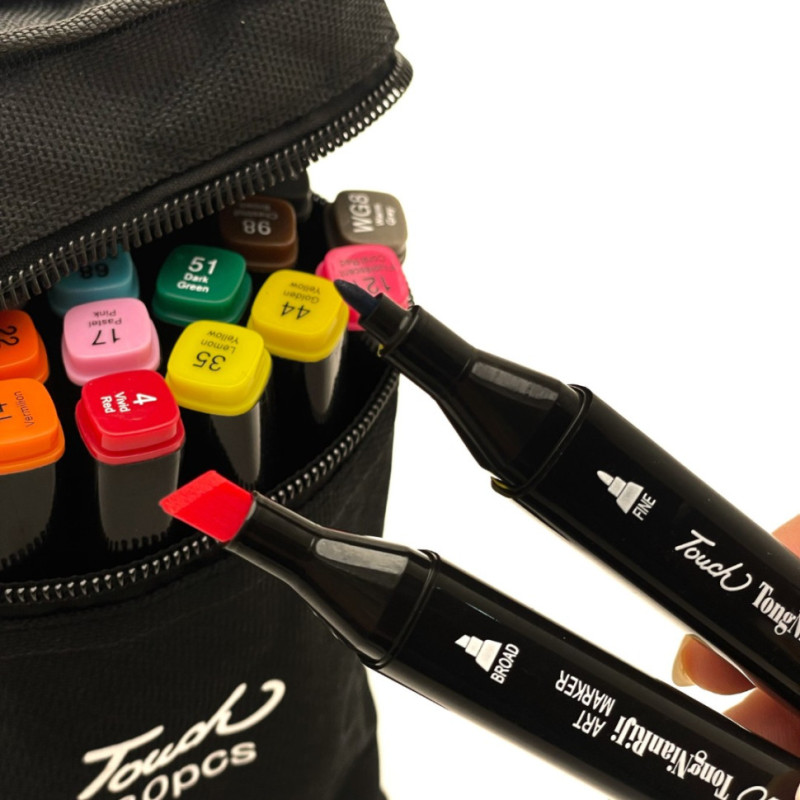 Набір перманентних маркерів на спиртовій основі - чудовий вибір для творчості, дизайну та професійного малювання. Двосторонні маркери дозволяють поєднувати різні техніки: тонкий наконечник ідеально підходить для промальовування деталей, а широкий — для зафарбовування та створення плавних переходів.
