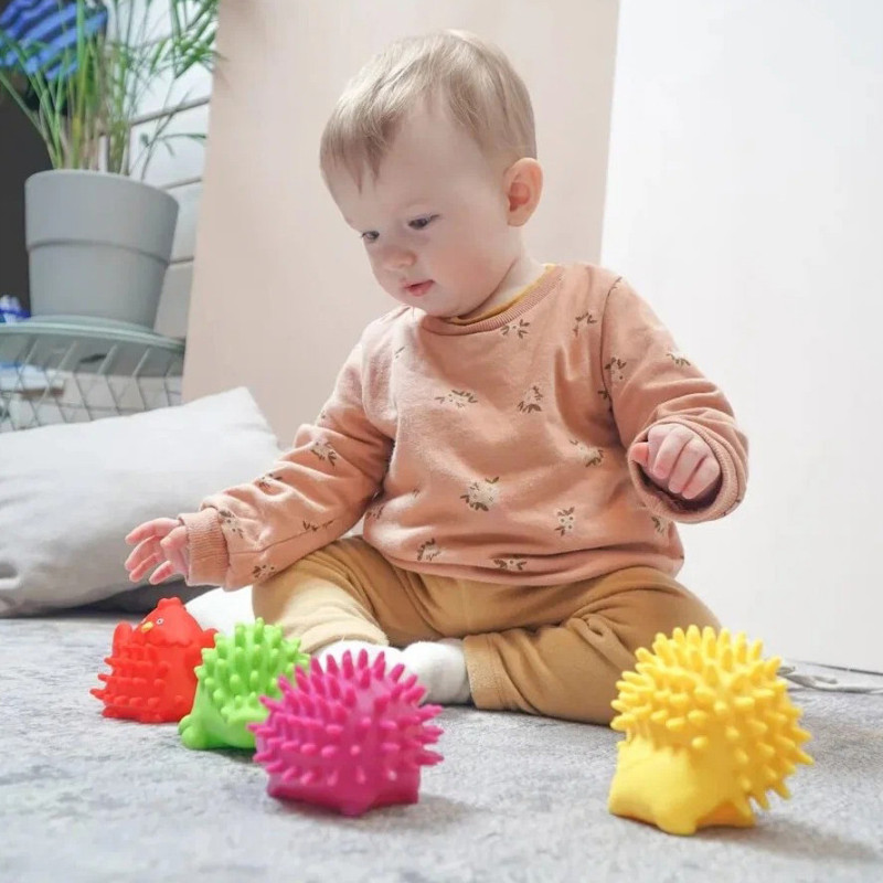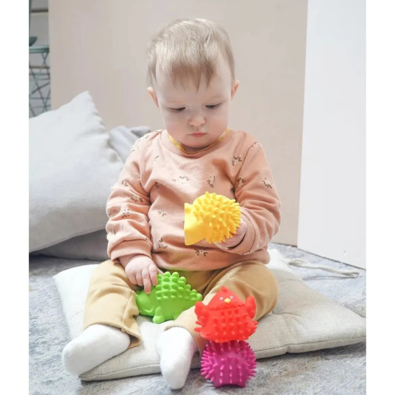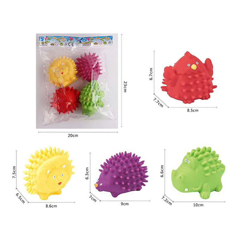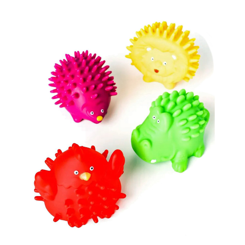 У комплекті набору 4 пищалки з м'якими шипами у формі звірят.