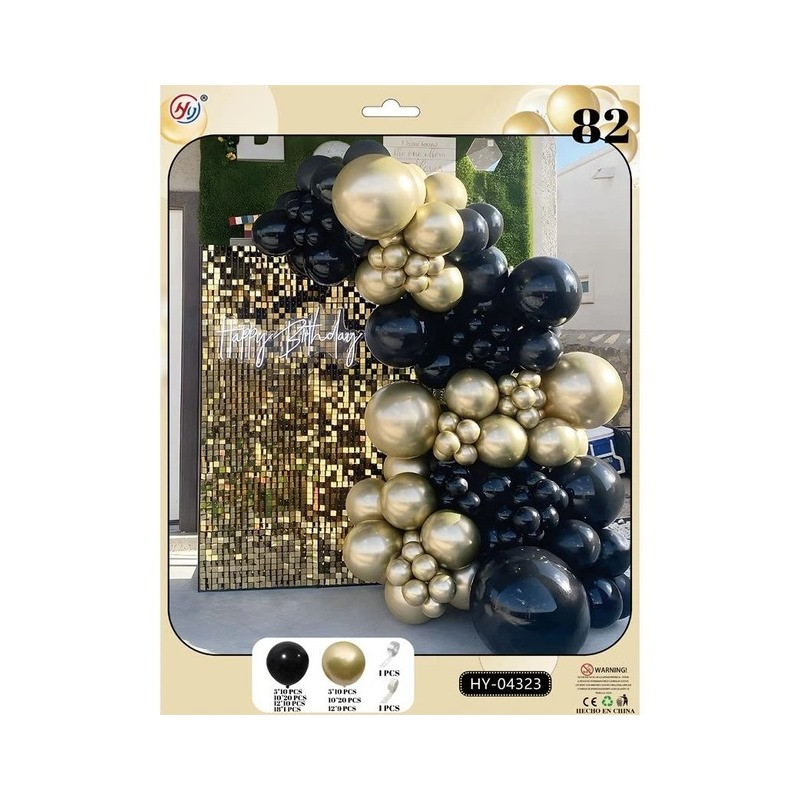 Набір повітряних кульок у чорному та золотому кольорах - ефектне рішення для створення стильної фотозони або святкової арки. Контрастне поєднання глибокого чорного з розкішним золотом виглядає сучасно та урочисто, ідеально підходить для днів народження, вечірок, ювілеїв, випускних, корпоративів та тематичних подій.
