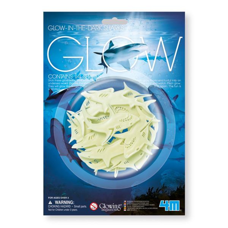 Набір сяючих наклейок від 4M Акули містить 14 наклейок. Комплект сподобається дітям від 3 років, особливо хлопчикам і любителям морських глибин. Відкрийте простір для польоту фантазії і перетворіть вечірню кімнату на підводний світ! Як наклеїти У наборі є спеціальні двосторонні клейкі вкладиші. Зніміть зі вкладиша спочатку одну захисну плівку і прикладіть до зворотної сторони акули. Потім зніміть другу захисну плівку і наклейте акулу на тверду поверхню (стіна або стеля). Матеріал дитячих наклейок містить безпечні частинки, які поглинають і акумулюють світло. Тому вдень акули 'підзаряджаються', а вночі світяться. Набір із серії Glowing Imaginations корисний для розвитку уяви, зміцнення емоційного благополуччя. Наклейки у вигляді акул піднімають настрій і можуть навіть замінити нічник у дитячій кімнаті. У комплекті: - 12 акул, що світяться в темряві,- двосторонні клейкі вкладиші.