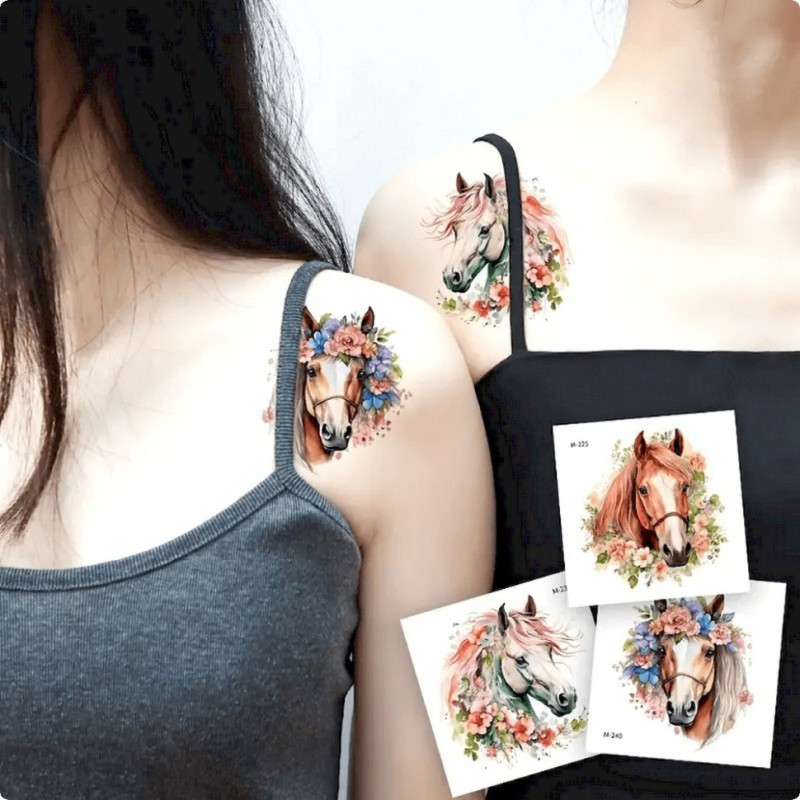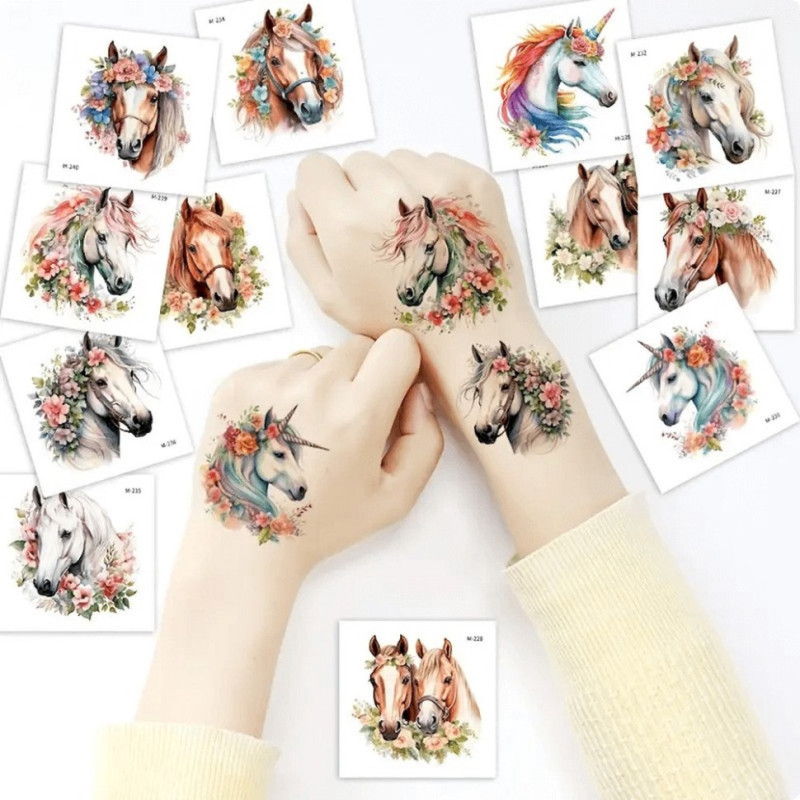 Набір тимчасових татуювань "Коні" Horses-20-01 розмір 6х6 см