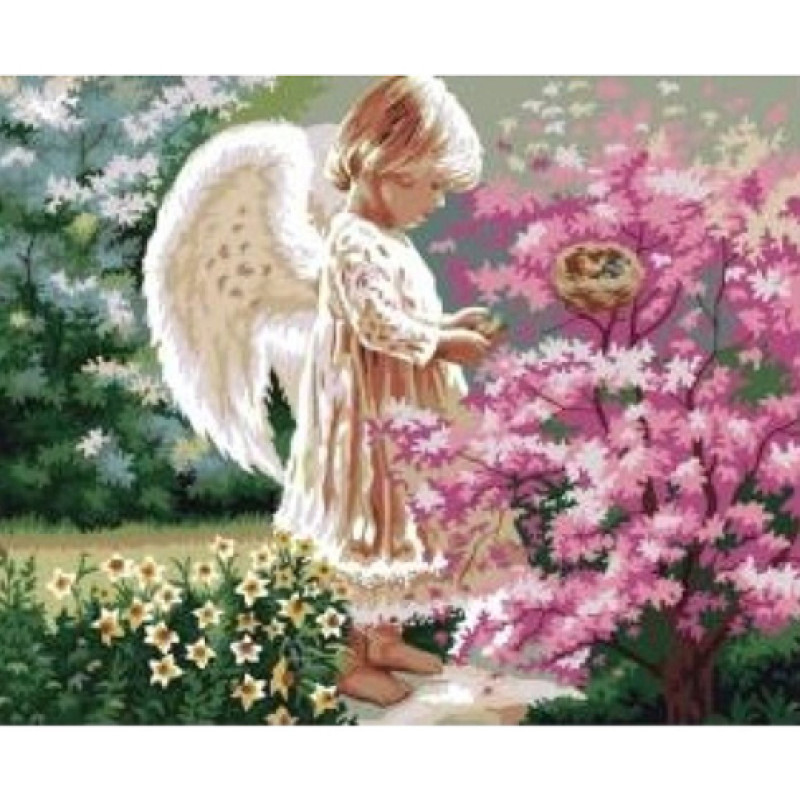 Набір для розпису за номерами Діти "Янголятко і пташки" 40*50 см КНО1048