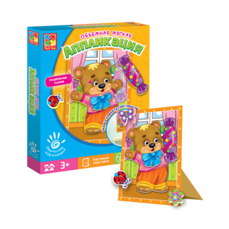 Малюкові необхідно підібрати за зразком деталі картинки і приклеїти очі персонажу. До комплекту входить: картинка-основа, наклейки для декору, рухомі оченята, рамка-підставка. Рекомендовано для дітей від 3 років. Розмір упаковки: 24,5х20х3 см.