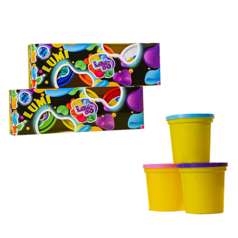 Набір тіста для ліплення 3 склянки - набір містить 1 колір неонового тіста і 2 кольори тіста, що світяться в темряві.