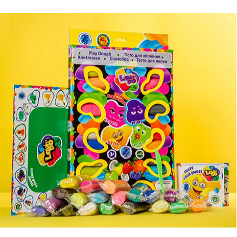 Набір тіста для ліплення TM Lovin'Do Асорті 24 кольори "4 Friends" - набір тіста для ліплення "Lovin'do 4 Friends", 24 кольори. Набір містить 4 види тіста для ліплення: 7 кольорів неонового тіста (neon) та 4 кольори тіста, що світиться у темряві (lumi), 7 кольорів тіста з блискітками (glitter) та 6 кольорів тіста із запахом фруктів (aroma). Після гри тісто можна зберігати у пакетиках, щоб не засихало. Тісто приємне на дотик, нетоксичне. Вага в упаковці: 830 г. Габарити в упаковці: 20x2x32 см. Комплектація: 24 кольори тіста (4 lumi, 7 glitter, 6 aroma, 7 neon), стек, ігрове поле, пакетик для зберігання тіста.