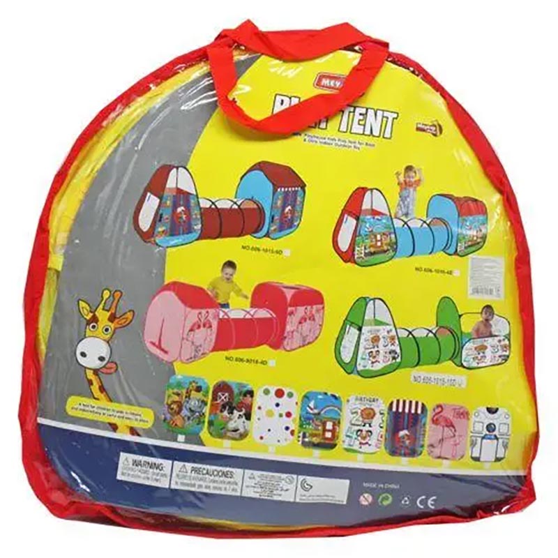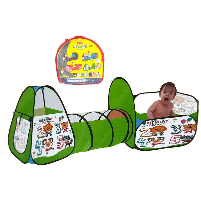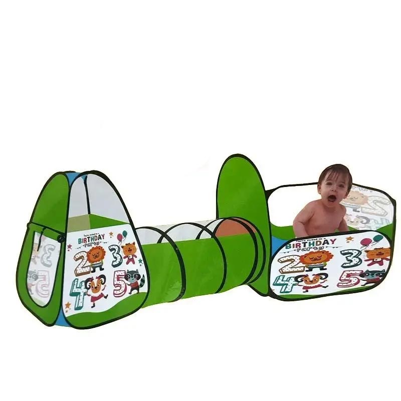 Чарівний простір для гри та пригод — яскравий дитячий намет із зручним тунелем-переходом, який об’єднує дві ігрові зони в одну велику історію. Ідеальний для рольових ігор, будівництва фортець і спільних пригод між друзями та братами або сестрами.