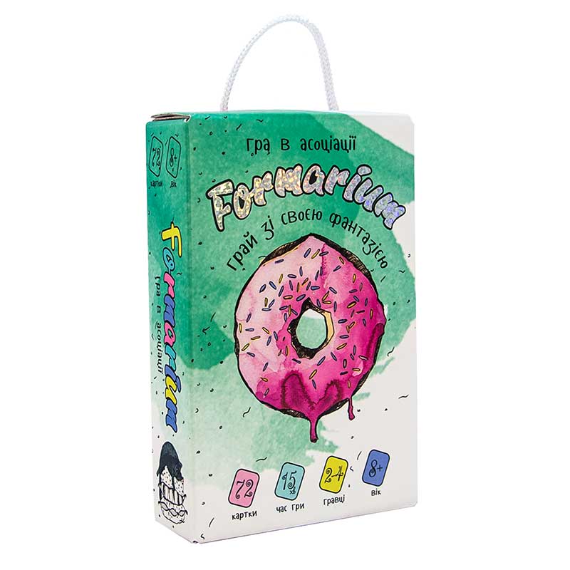 «Formarium» (Формаріум) – фантастична карткова гра в асоціації. У грі ви знайдете 72 картки, серед яких будуть карти з малюнками і карти з різними властивостями. Мета гри – вгадувати властивості карток в центрі столу, так само, як і більшість гравців. У ситуації, коли всі гравці виклали однакову властивість, або все різне – ніхто не заробляє бали. З настільною грою «Formarium» Strateg (30851) ви переконаєтеся, що кожна людина в однакових предметах бачить абсолютно різні форми і характеристики! Це дуже захоплююче!