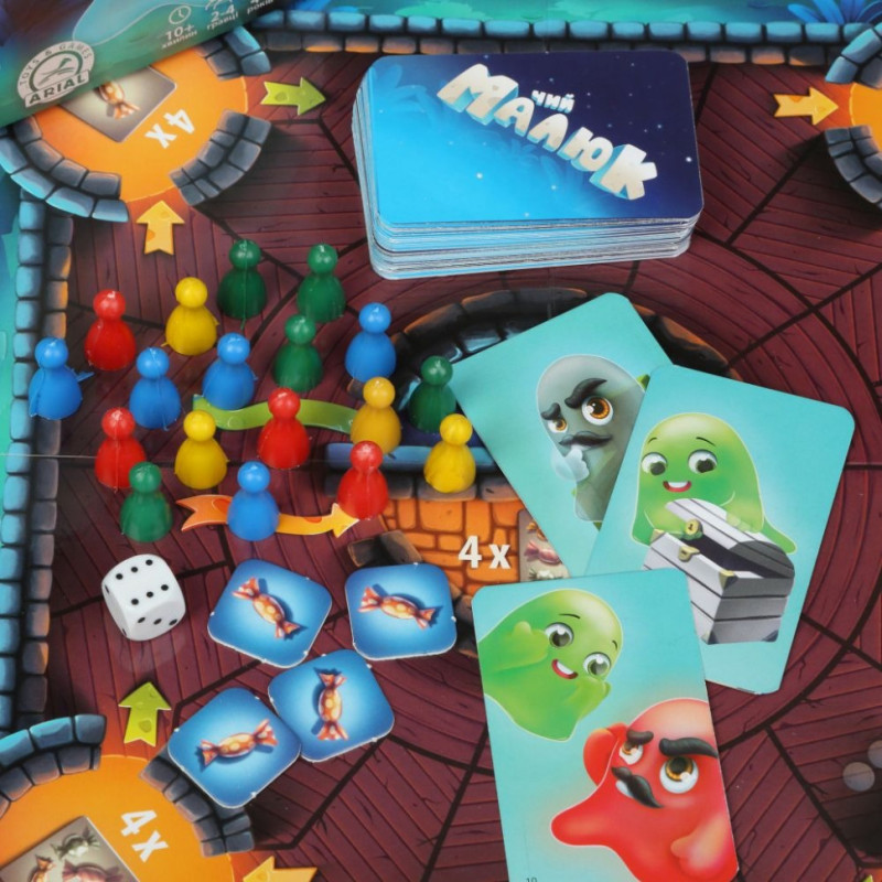 Симпатичні малюки - приведення зголодніли не на жарт. Їм потрібно швидше зібрати якомога більше солодощів розкладених в затишних місцях. Але потрібно бути обережніше з татом. Він може наздогнати малюка і відправити його додому ні з чим. Перемагає гравець, який зібрав більше всіх солодощів. У цій грі вам належить керувати цілою командою симпатичних привидів, думати стратегічно, тікати від тата і веселитися від душі. До складу настільної гри входять: ігрове поле, фішка -тато-приведення, 18 фішок малюків 4 кольорів, 20 фішок солодощів, кубик, правила гри. Час гри: 20-30 хв. Мін. вік: від 4 років. Кількість гравців: 2-4 Сама добра і карткова гра з привидом - малюком на уважність і реакцію. Перед гравцями викладаються п'ять різнокольорових карт із зображеннями: малюк-приведення, червоне крісло, жовта лампа, зелений скриню, і білий привид. Потім гравці по одній розкривають карти з колоди і намагаються схопити фішку із зображенням відповідного предмета раніше за інших. Вистачати треба предмет, який збігається з зображеним на розкритої карті, в тому числі за кольором, або предмет, зображення і колір якого, навпаки, на карті відсутні. Найшвидший і кмітливий гравець забирає собі виграну карту.
