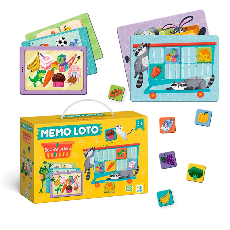 Настільна гра Dodo Memo & Loto «Супермаркет» — захоплива розвивальна гра для дітей, яка поєднує мемо-пам’ять і лото у веселому супермаркетному форматі!