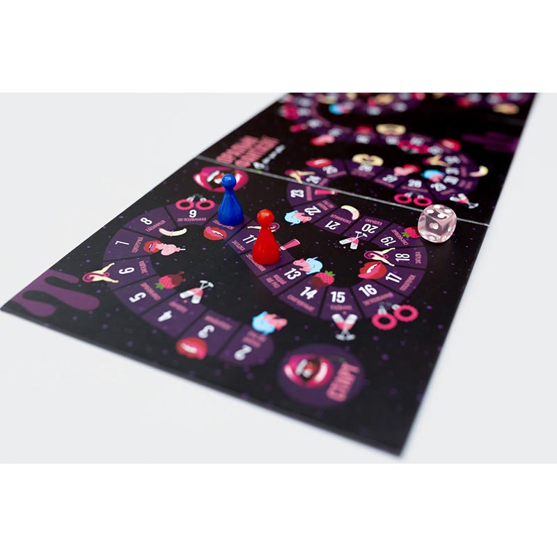 Коротко про правила: Кидайте кубик і по черзі рухайтеся ігровим полем із завданнями. Кожна клітинка має свій номер та унікальне завдання, детально описане в інструкції. Потрапивши на поле «Цукерка», пропускаєте хід. Переможець — той, хто першим дістанеться до поля 69 і отримає максимум задоволення.
