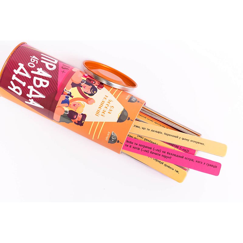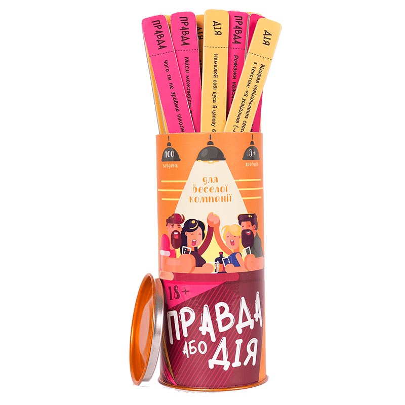 Коли старі теми вже не гріють, а хочеться чогось новенького — ця гра стане справжньою родзинкою. Обрали «Правду»? Готуйтеся відповідати чесно на пікантне запитання. Випала «Дія»? Виконуйте веселе (а іноді зухвале) завдання. Усе створено для гарного настрою, сміху та драйву.