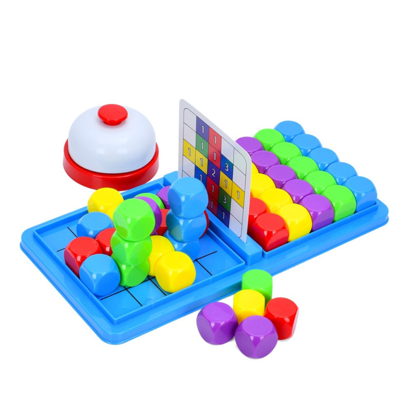 Кубики (50 шт.): Велика кількість спеціальних кубиків (можуть бути з кольорами, символами або числами) є основним елементом гри. Гравцям потрібно швидко знайти потрібну комбінацію.
