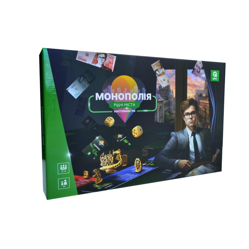 Комплектація гри містить ігрове поле, фішки, кубики, будинки, готелі, картки сюрпризів, повідомлень і прав на власність, а також декоративні гроші. З можливістю гри від 2 до 4 осіб і рекомендованим віком від 8 років, вона стане чудовим вибором для розваг і навчання в сімейному колі або серед друзів.