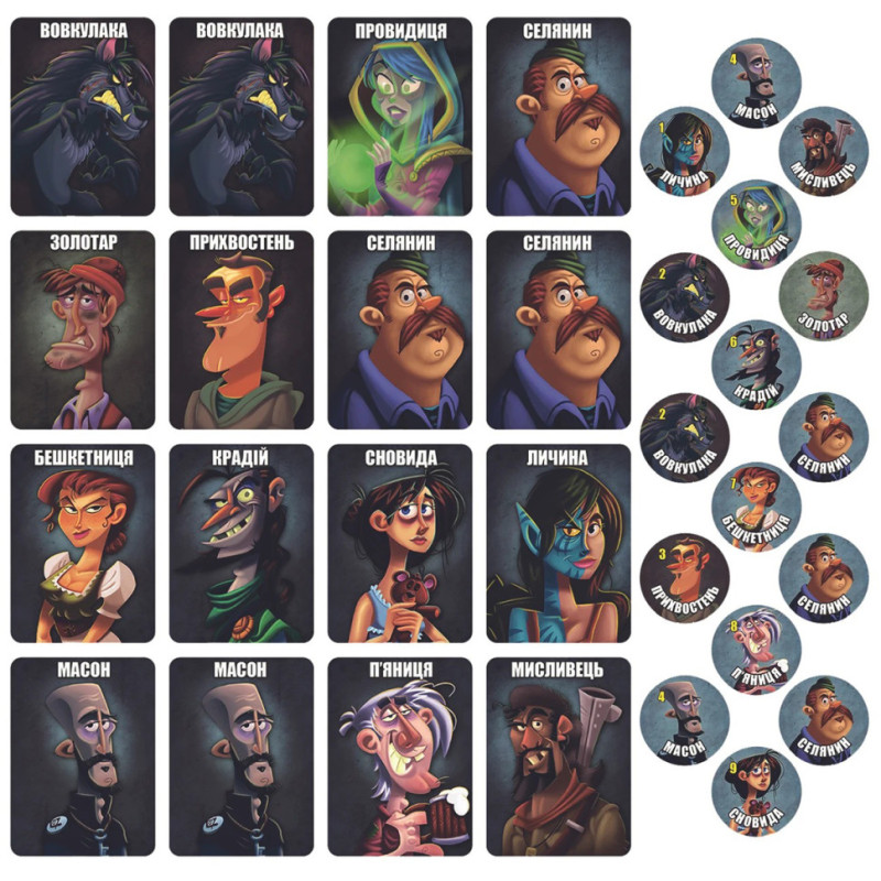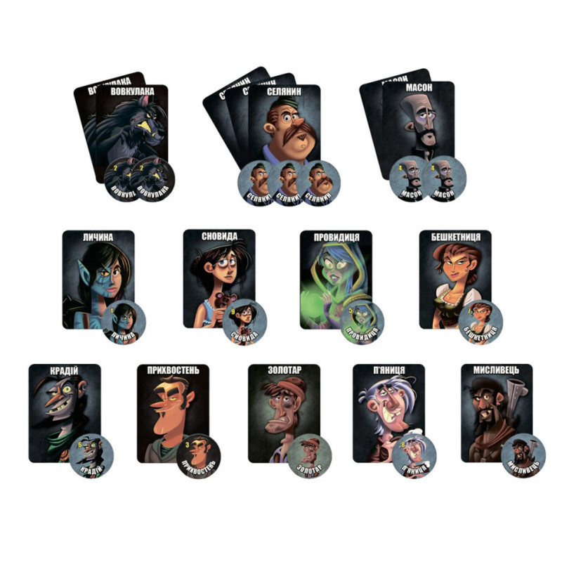 Окремо знаходиться персонаж Личина, яка може скопіювати роль будь-якого іншого гравця вночі.
