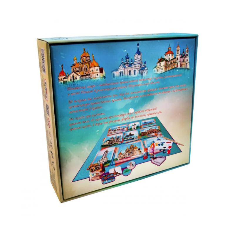 Настільна гра «Почаївська лавра» Strateg (30102) поєднує гру з пізнанням та розвиває художні здібності. Малюків чекає захоплююча подорож однією зі святинь України – православним храмовим комплексом та монастирем у місті Почаєві. А також знайомство з їхніми визначними пам'ятками і все це у доступній ігровій формі.