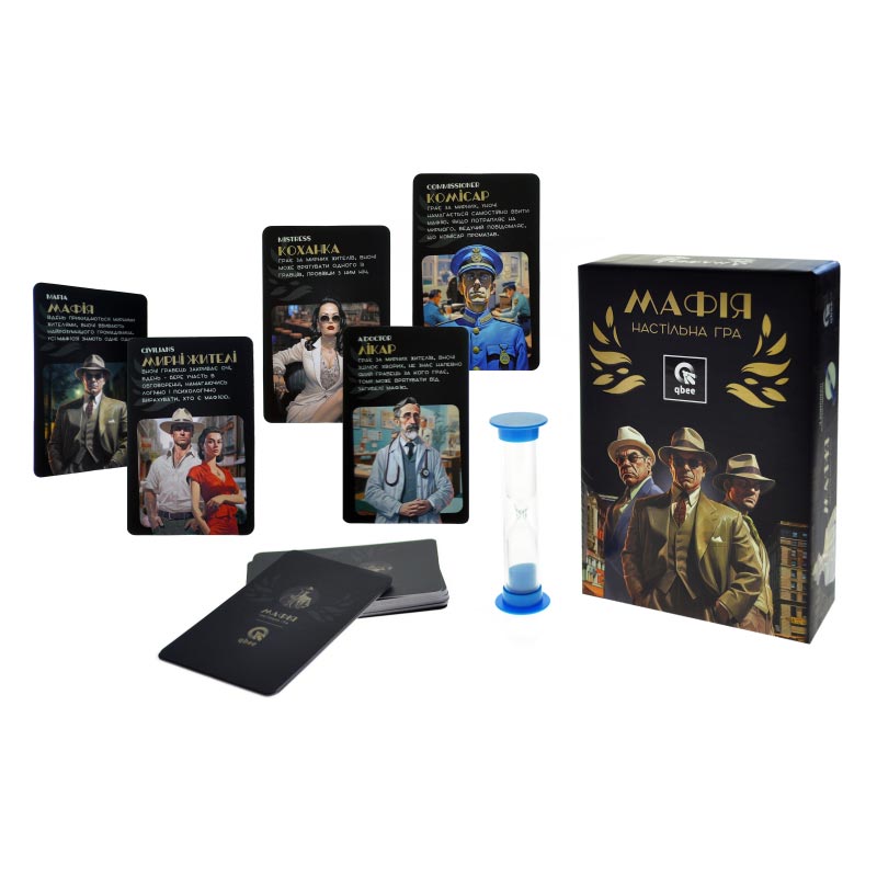 Яскрава атмосферна гра qbee «Мафія» стане центром будь-якої компанії, подарує сміх, інтриги та безліч незабутніх моментів.