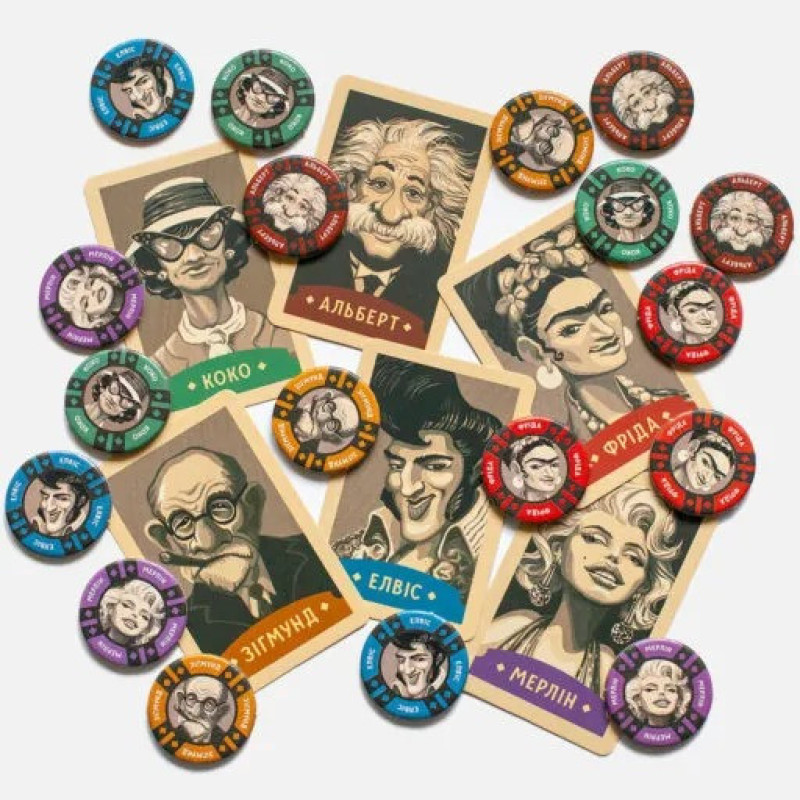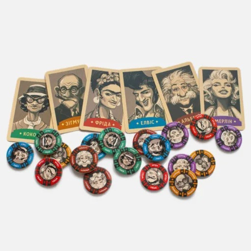 Цікава настільна гра "Салон Пана Фарта" 960117 - універсальна розвага, яка сподобається не тільки дітям, а й дорослим. В процесі гри Ваша дитина зможе нарешті зрозуміти, що може бути спільного у Коко Шанель, Елвіса Преслі, Альберта Ейнштейна і Зигмунда Фрейда. Всі ці герої зможуть зібратися за грою в карти в салоні пана Фарта, одним з них Ваш малюк зможе себе уявити. Головне завдання гри неймовірно проста, гравцеві необхідно правильно вгадати перевернуту картку. Щоб здобути перемогу в грі необхідно вибрати потрібну тактику, можливо, розслабитися і зробити ставки наосліп, або ж навпаки - керуватися розрахунком і довіритися внутрішньому почуттю. У коробці дитина знайде всі необхідні атрибути, включаючи правила гри, ігрове поле, картки символів, картки персонажів, ігрові монетки, фішки персонажів для ставок, а також жетони сили і жетон старт. Гра корисна для розвитку цілеспрямованості, комунікативних навичок, асоціативного і логічного мислення.